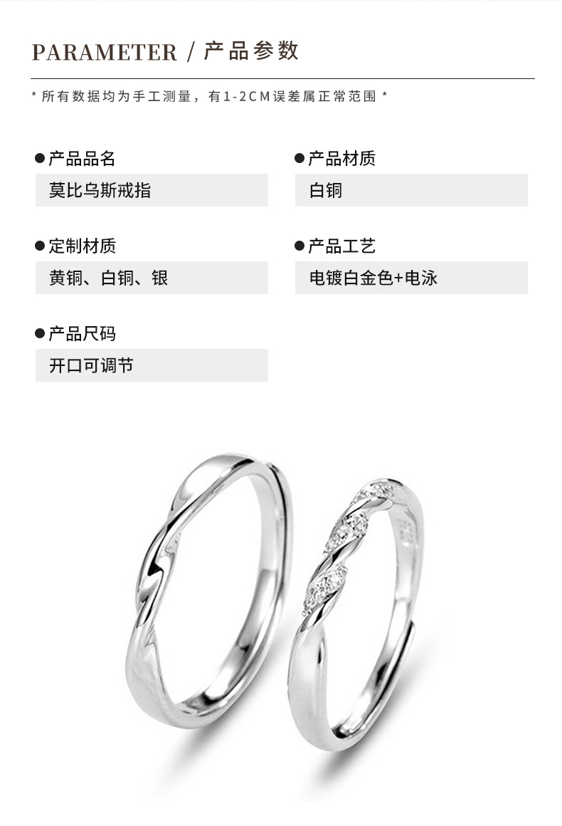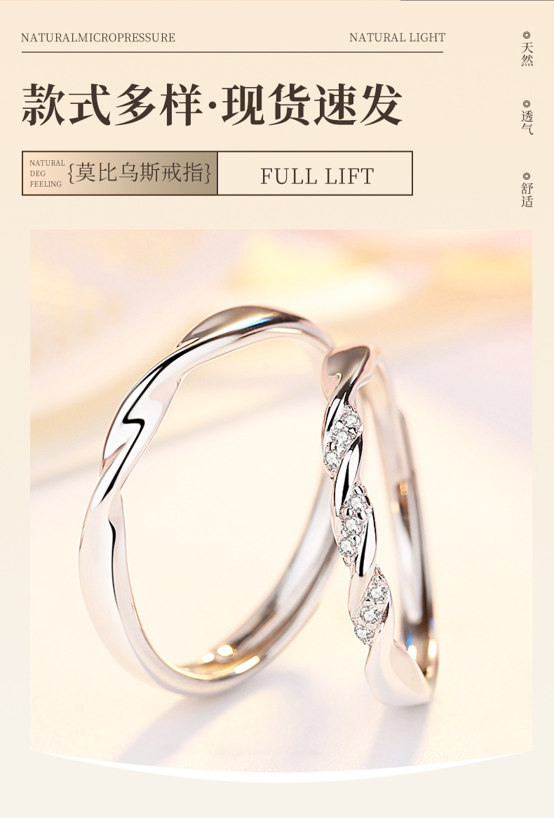 Mobius Ring White Copper Couple's Ring Niche ins Style Diamond Bracelet Simple Irregular Ring