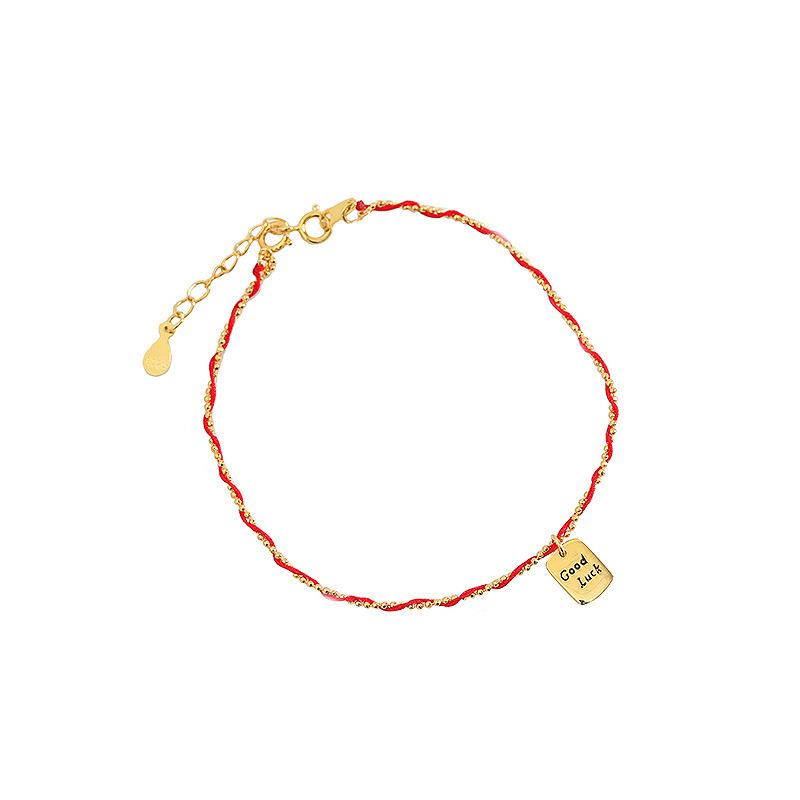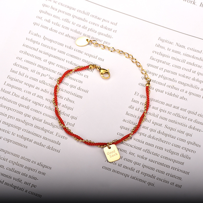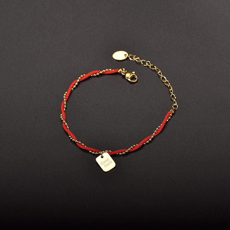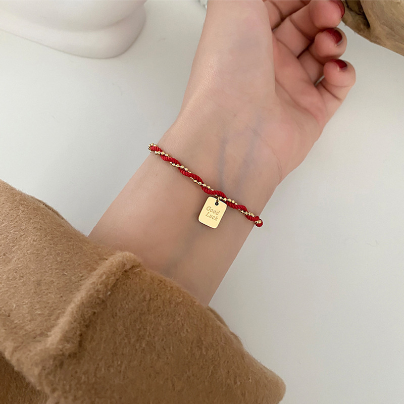 Wen Jian Red Rope Bracelet Women's New Year Good Luck Lucky Square Brand Rope Korean Style Simple Titanium Steel Hand Jewelry for New Year