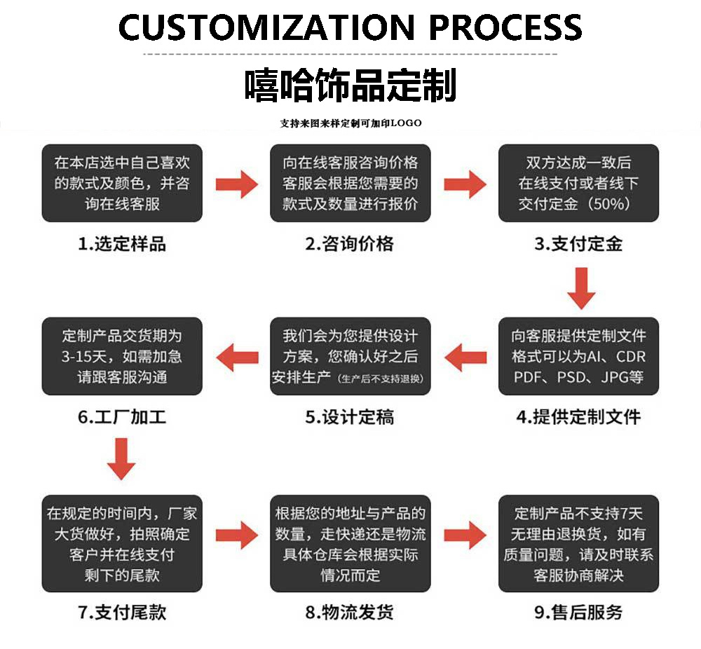 ●2. If you want to make your own logo, private packages or more changes on the items please contact us by chatting, mailing or whatsapp;
