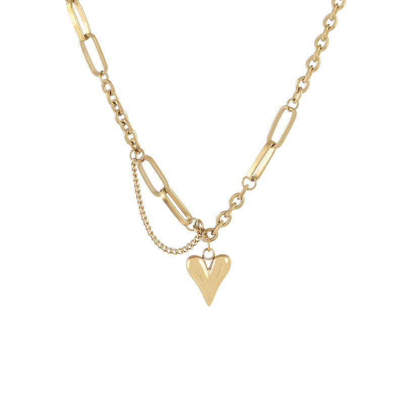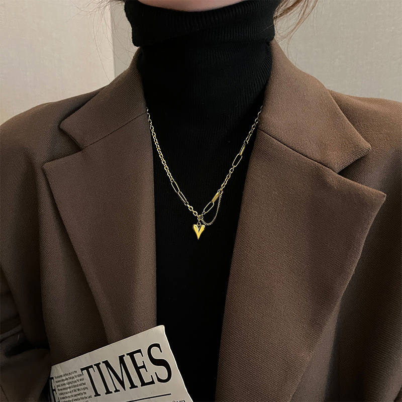 European and American retro hip-hop love titanium steel necklace women do not fade fashion niche ins trendy Net red temperament clavicle chain