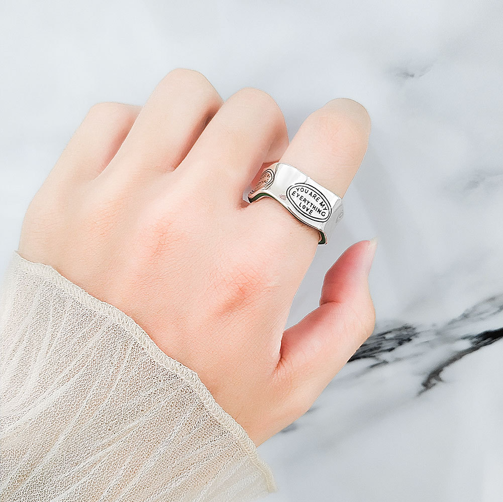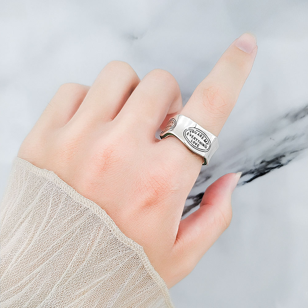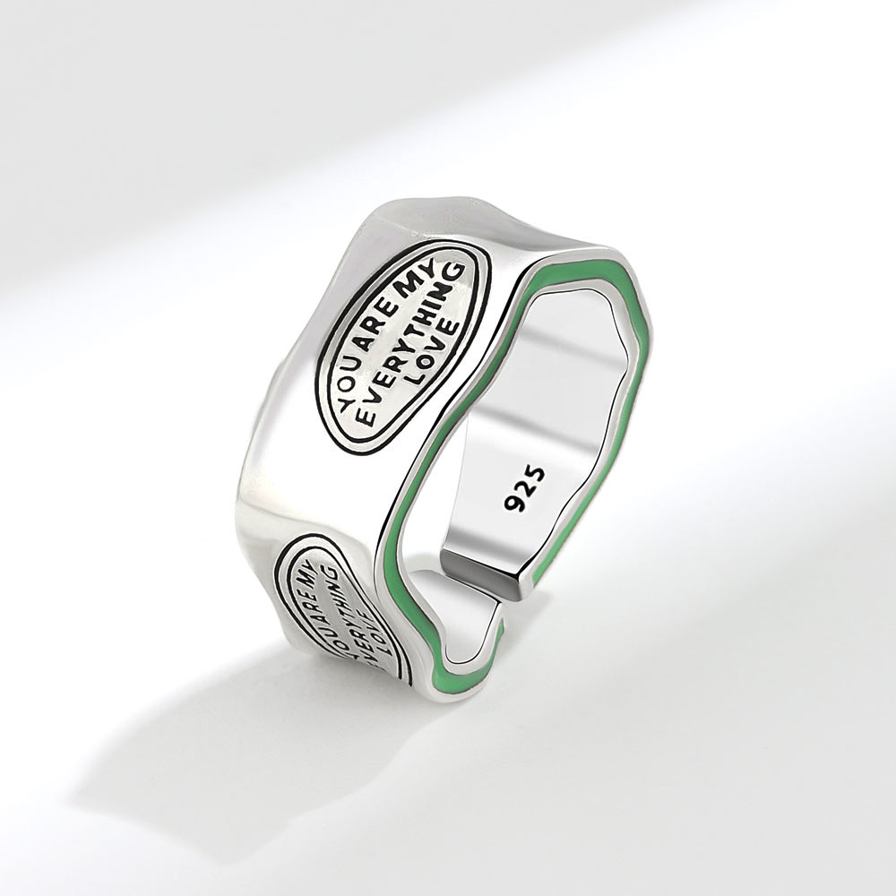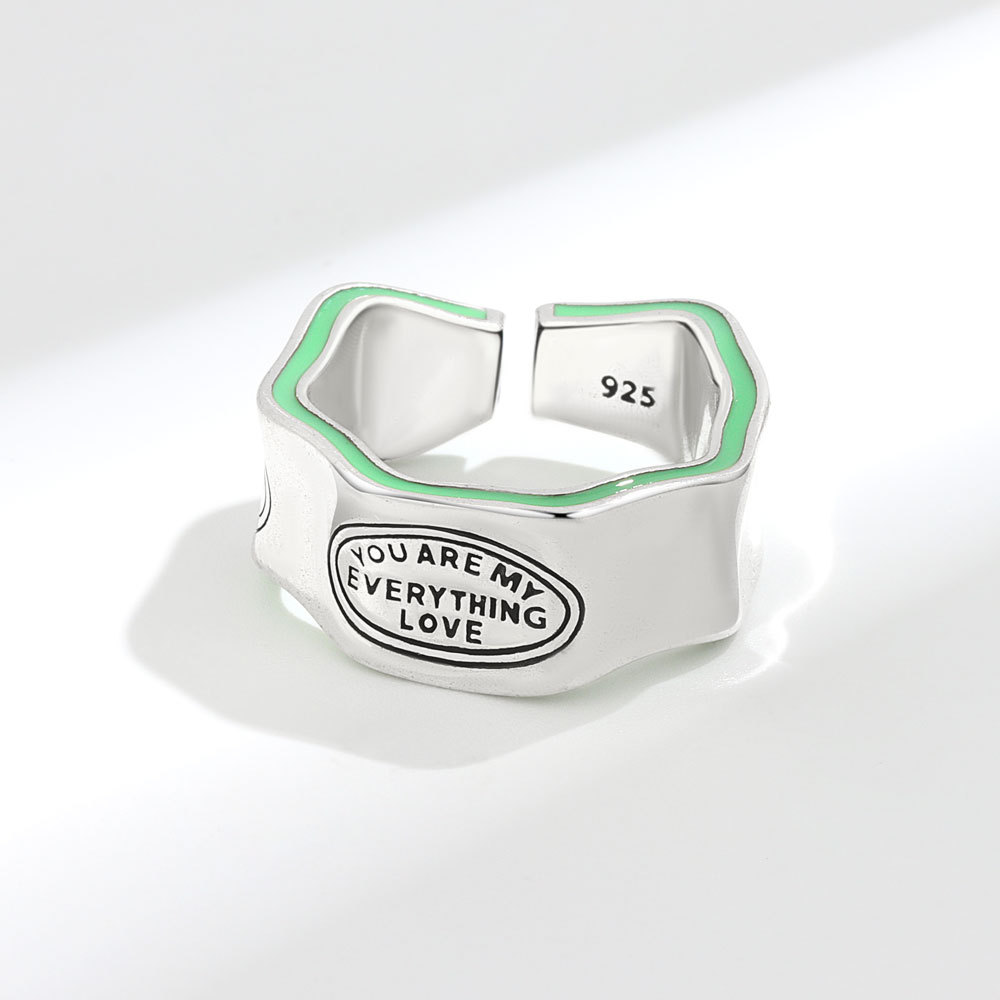 Cross-border hot selling fashion avocado green ring retro South Korea Dongdaemun fashionable irregular English letter ring