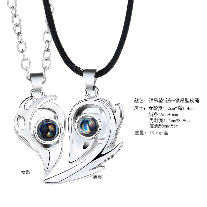 Color: Silver pendant chain + black pendant leather rope set