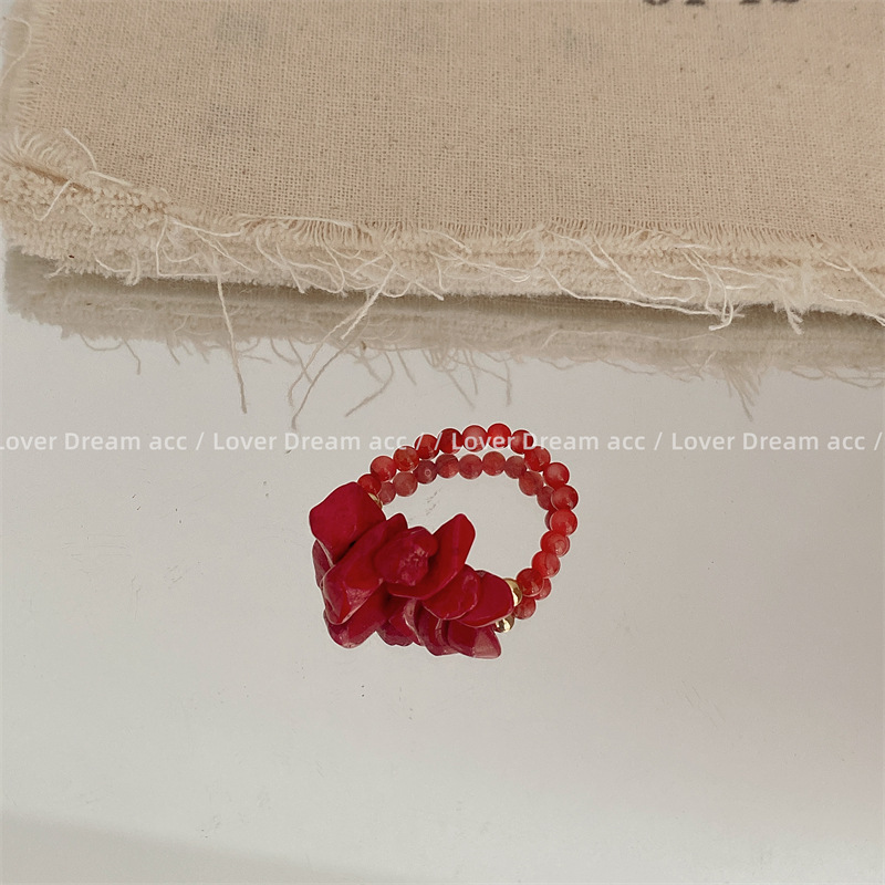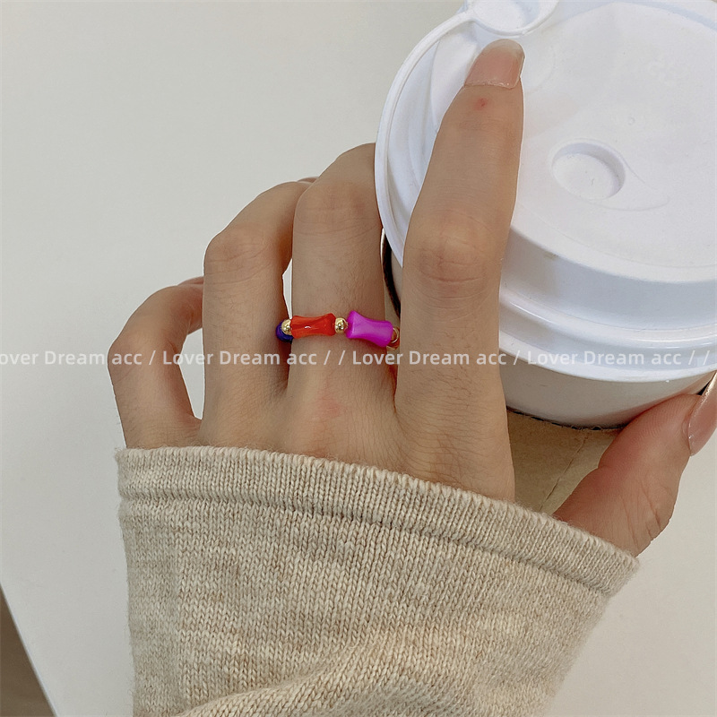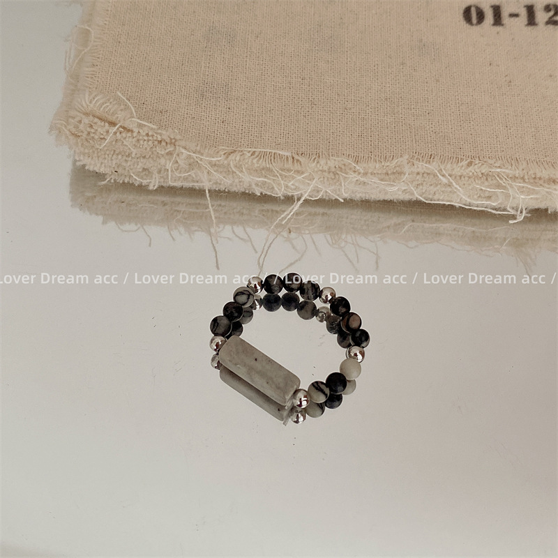 Luff Dream Original Design Green Color Stone Beaded Ring Elegant Elegant Bamboo Ring All-match Bracelet
