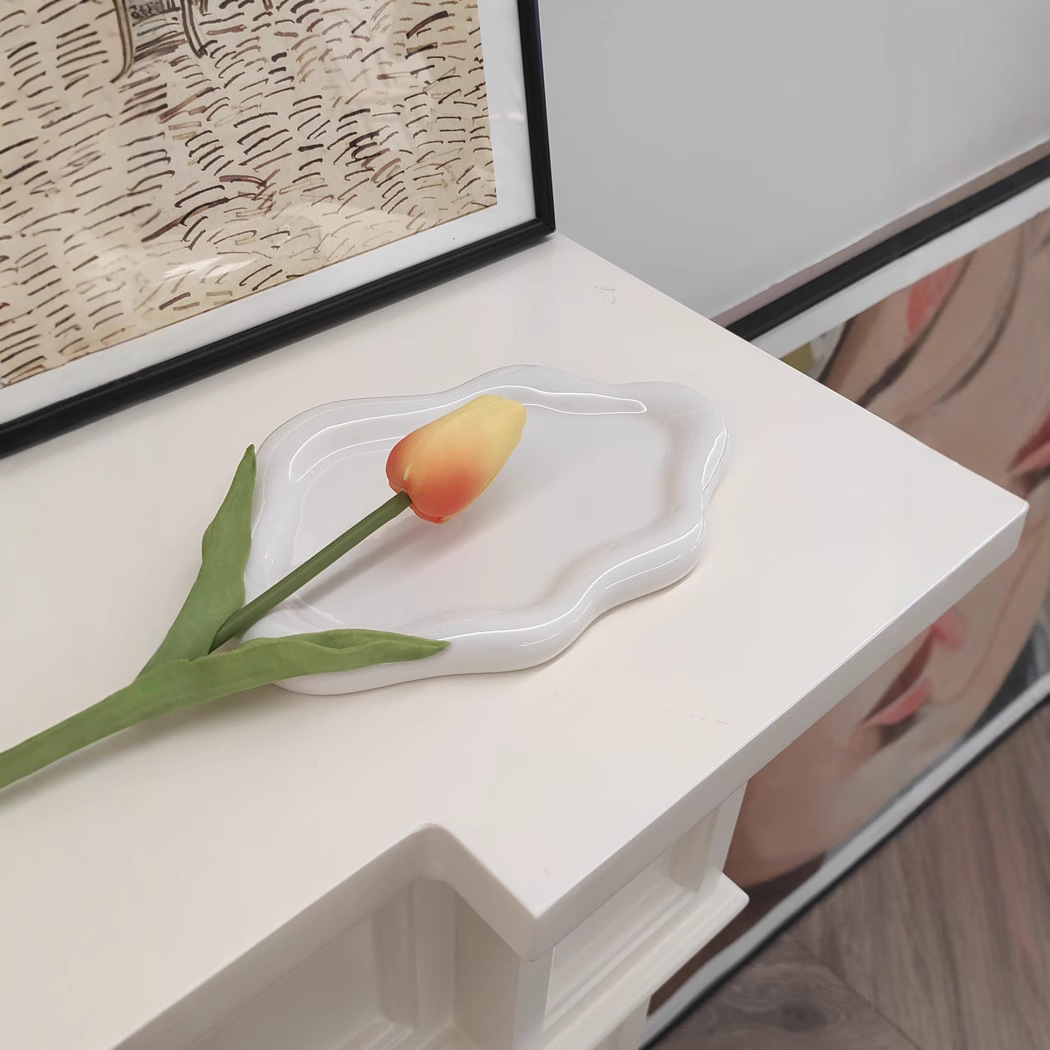 Creative Simple Pure White Ceramic Dinner Plate Home High Color Value Dessert Plate Jewelry Storage Plate Cloud Plate Factory Wholesale