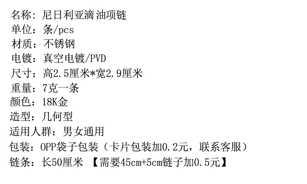 Cross-Border Tk Hot-Selling African Nigerian Stainless Steel Necklaces for Men and Women Titanium Steel Oil Drop Pendants Trendy Accessories