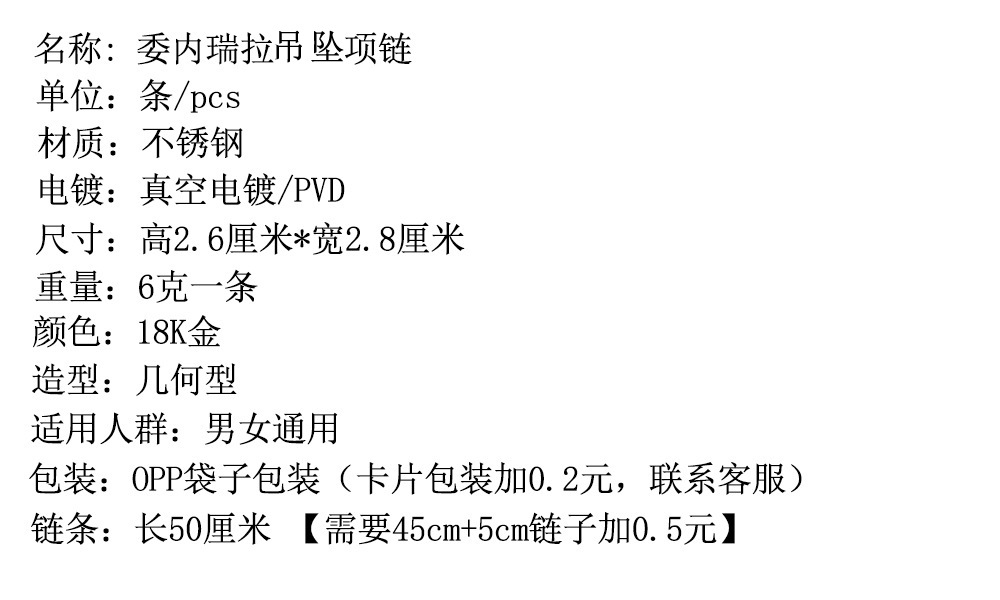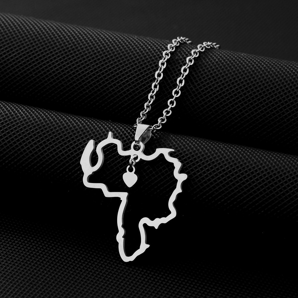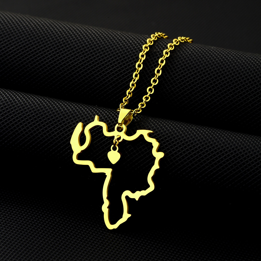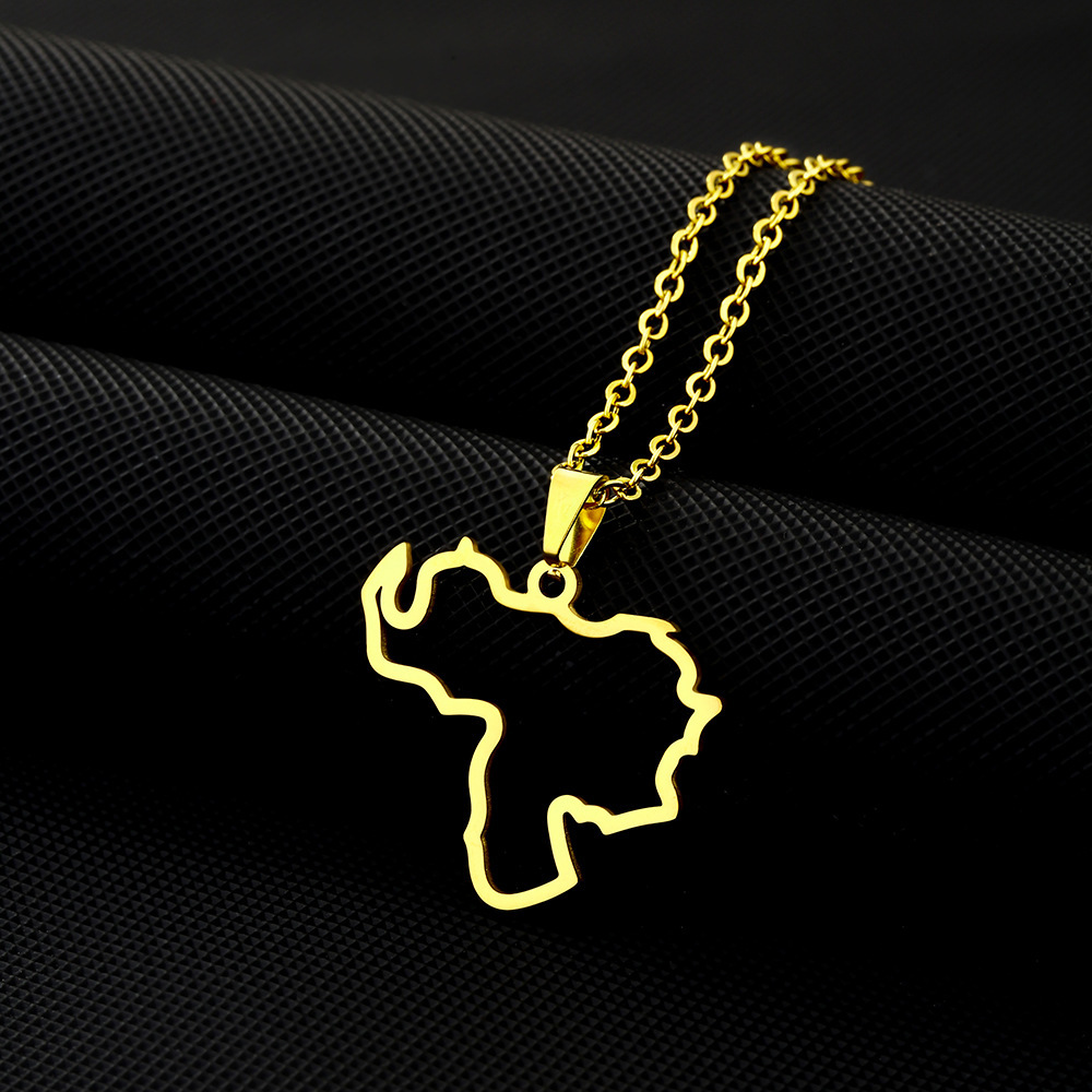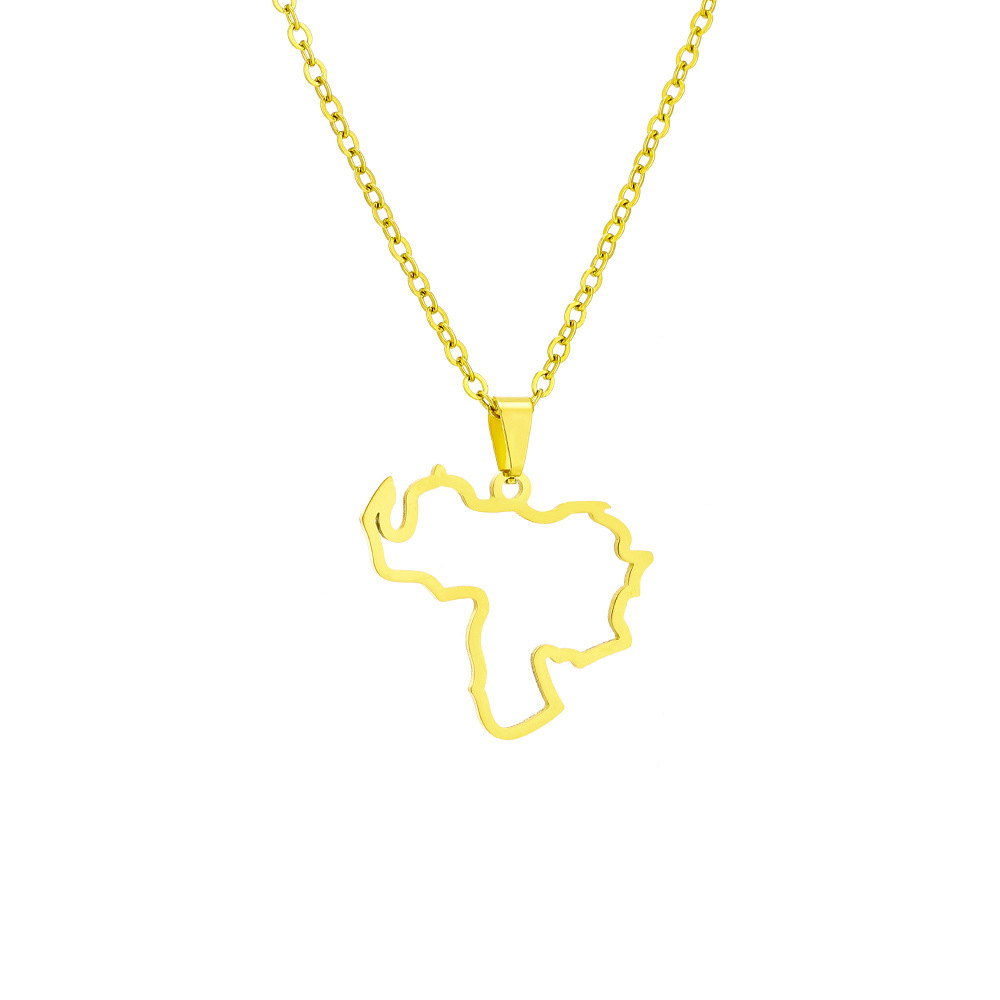 European and American Stainless Steel Venezuela Pendant Necklace for Men and Women, Fashionable Geometric Titanium Steel Couple Oil Dripping Cross-Border Jewelry