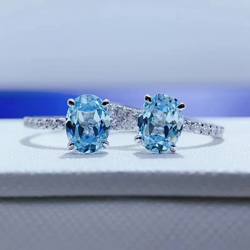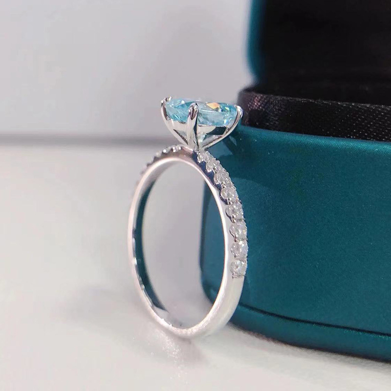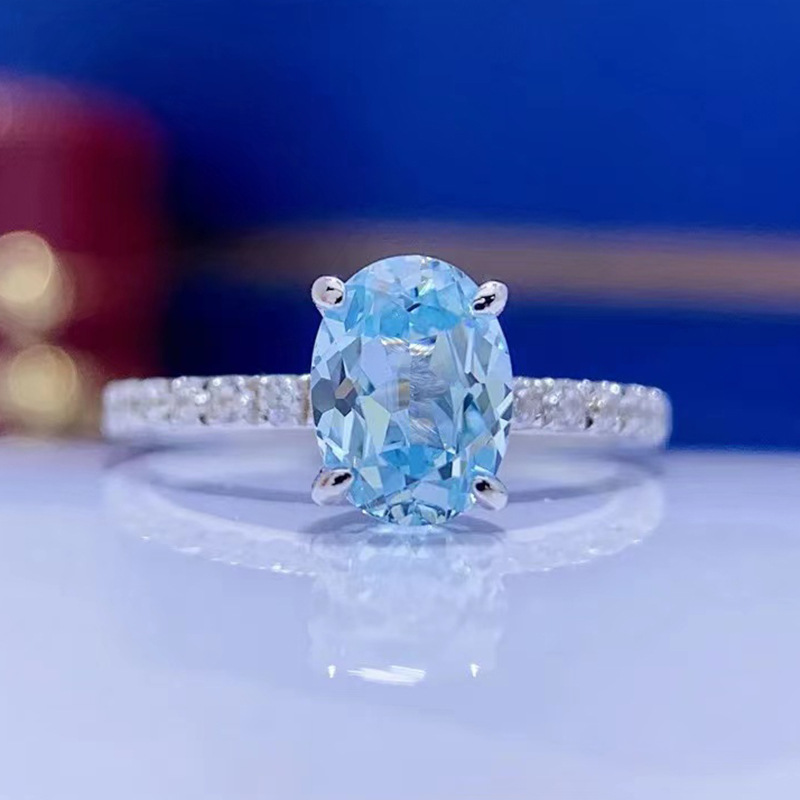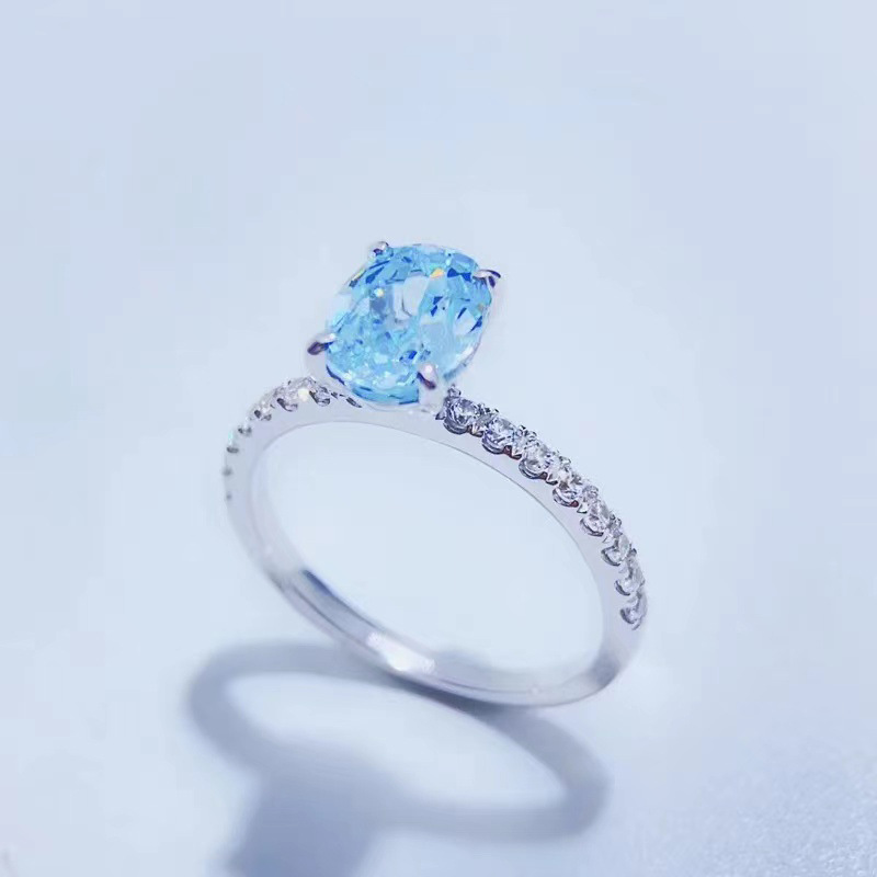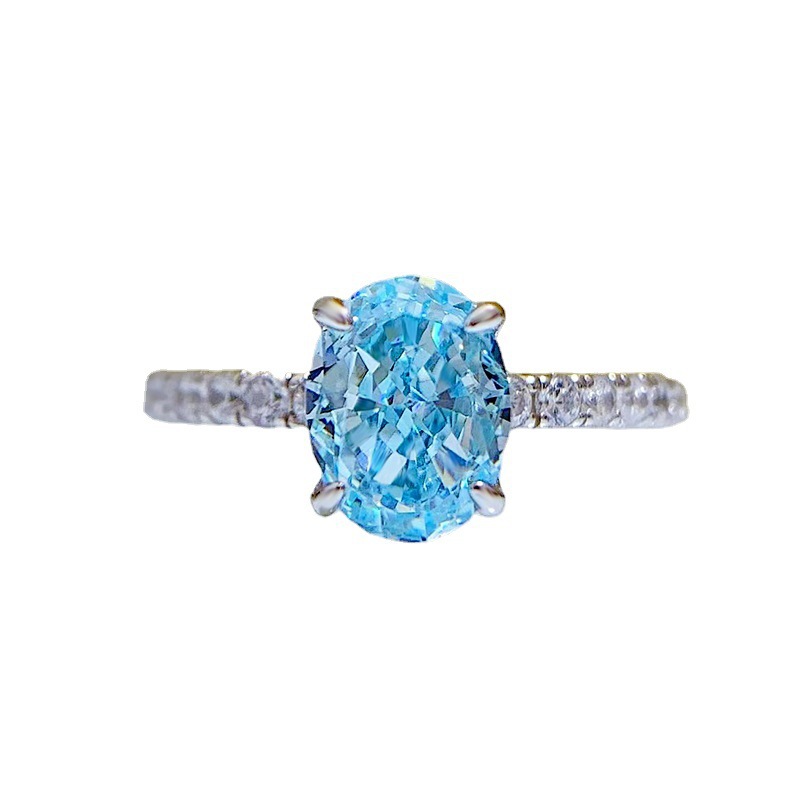 Hui Wing Jewelry 2023 New S925 Sterling Silver High Carbon Diamond Sea Blue Zirconium 6*8 Oval Raydion Women's Ring