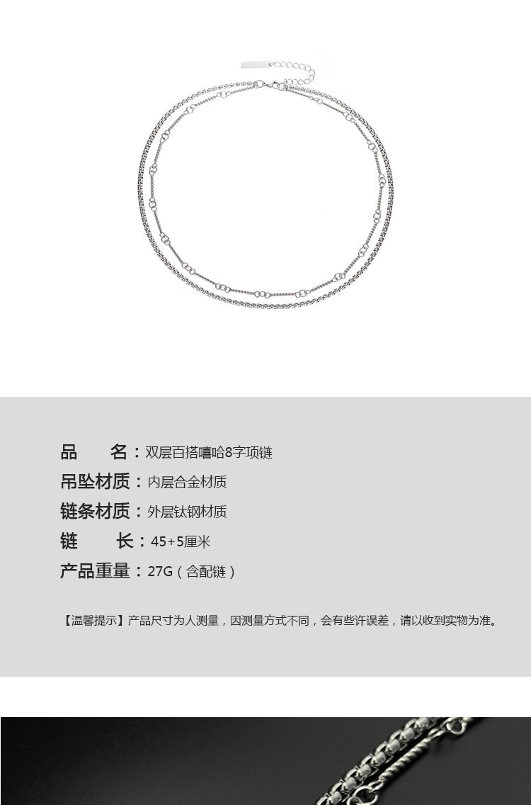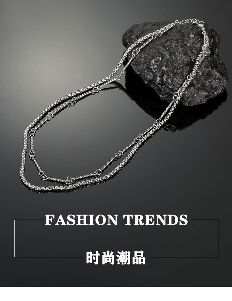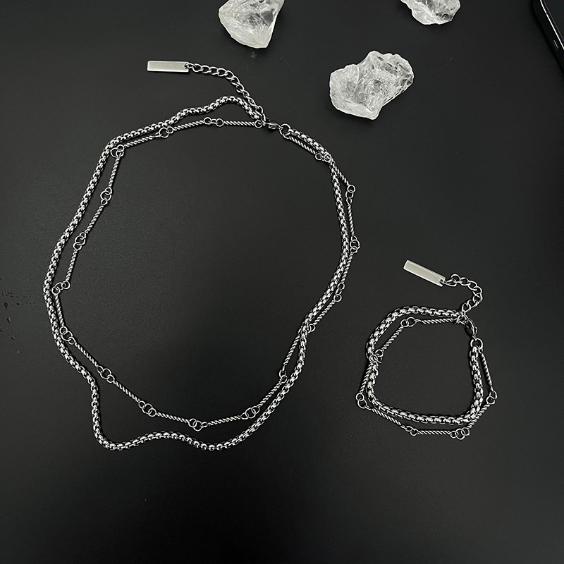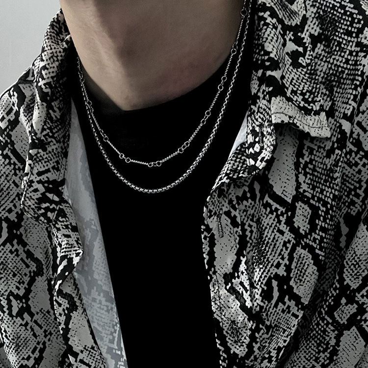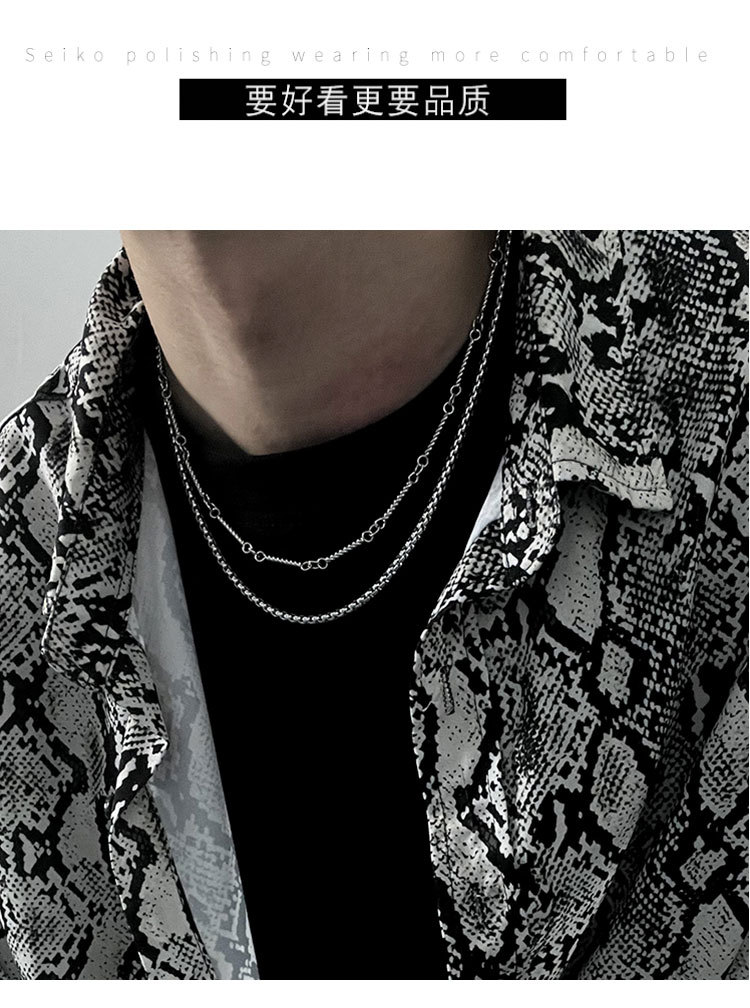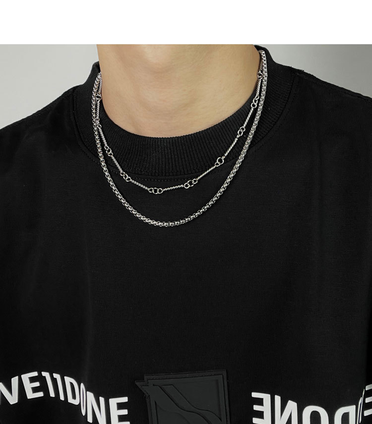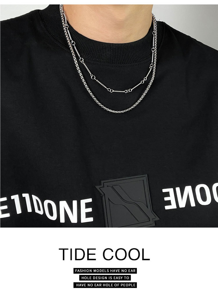 Double-Layer Titanium Steel Necklace Chain Circle Hip-Hop High-End Niche Handsome Clavicle Chain Men's Sweater Chain Accessories