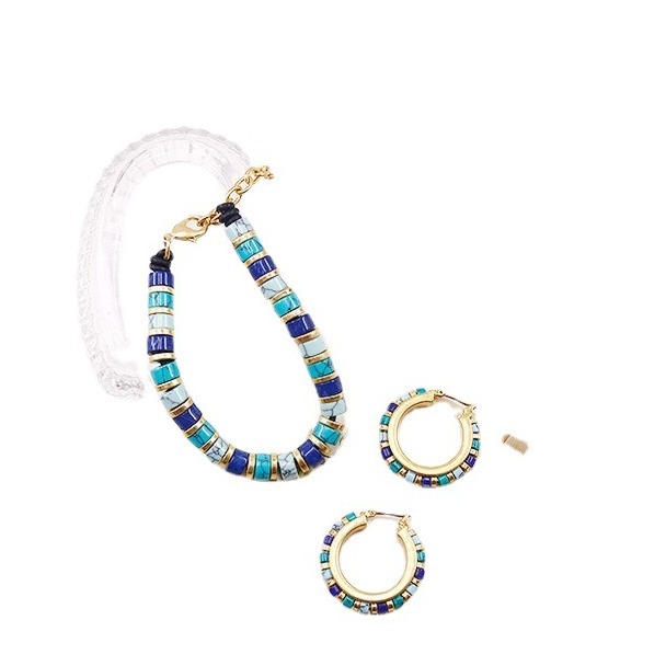 Cross-Border Medieval Jewelry European and American Style Real Gold Plated Marking Mma Original Design Turquoise Necklace Bracelet Earrings Set