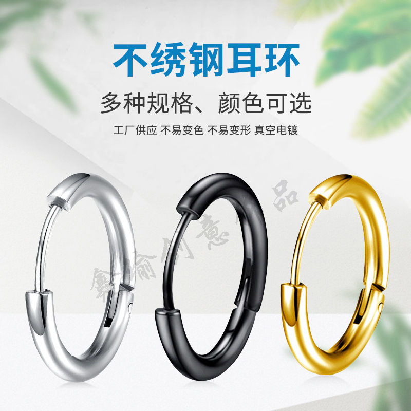 Net red 316 stainless steel circle earrings set European and American fashion titanium steel coil men's and women's jewelry wholesale