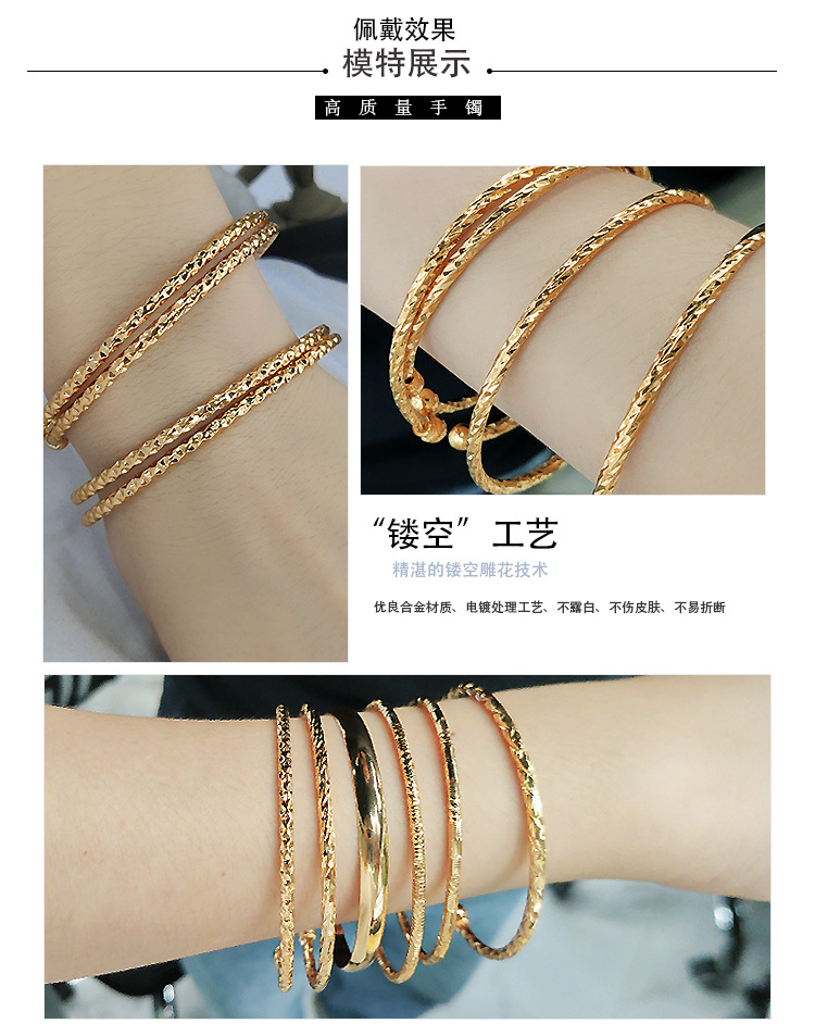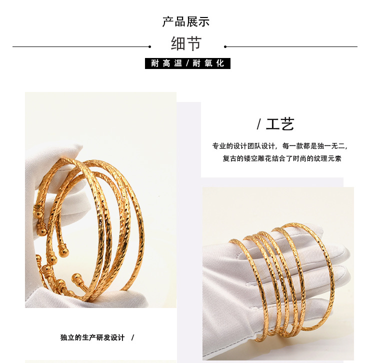 Cross Border Dubai 24K Gold Plated Fine Bracelet Indian Bride Wedding Jewelry Gold Bracelet Middle East Women's Bracelet Wholesale