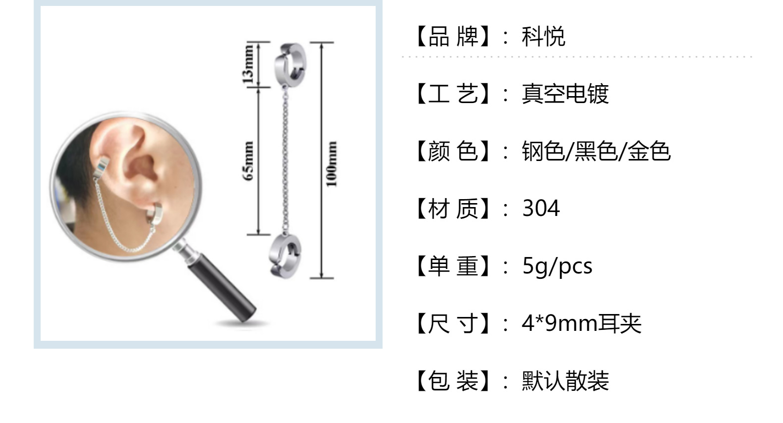 Color: Steel color double ear clip (no ear hole can be taken)
