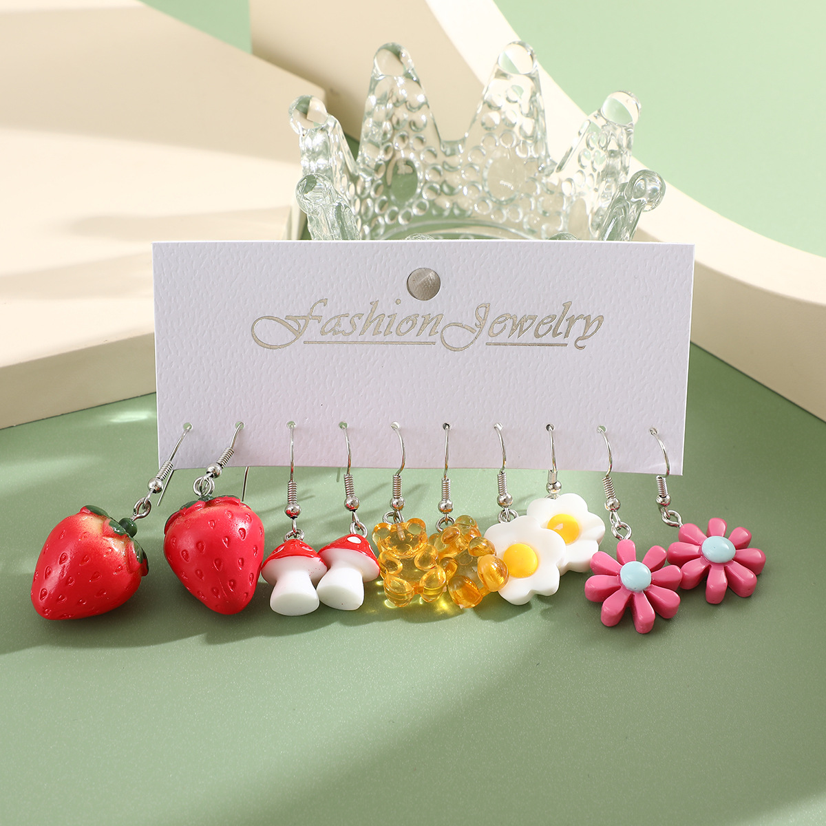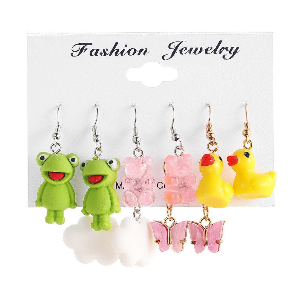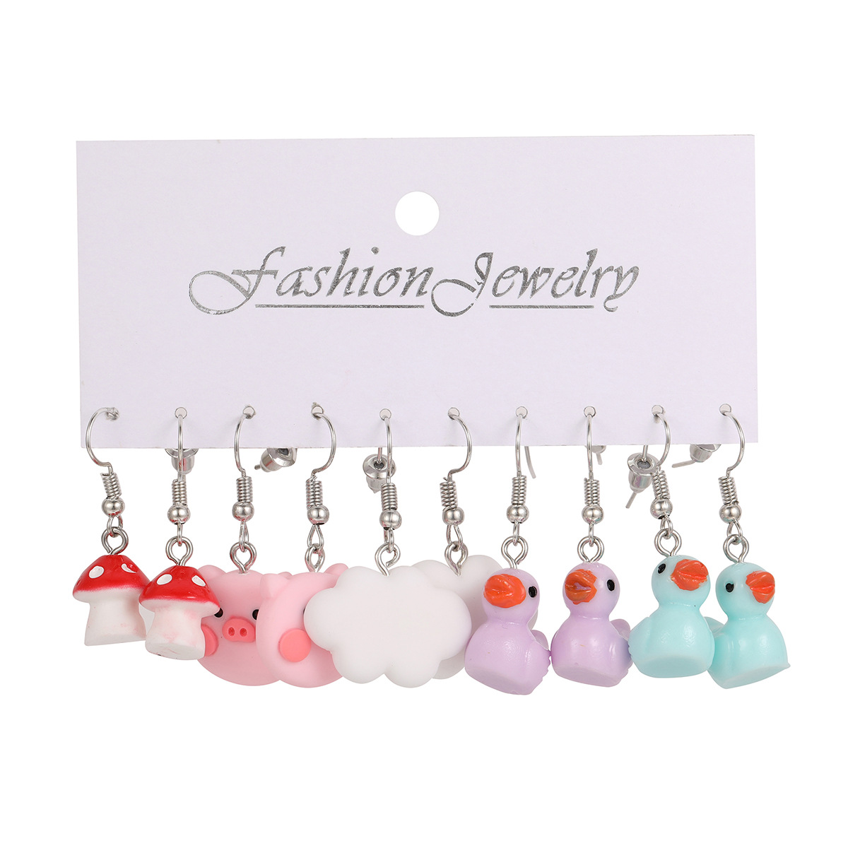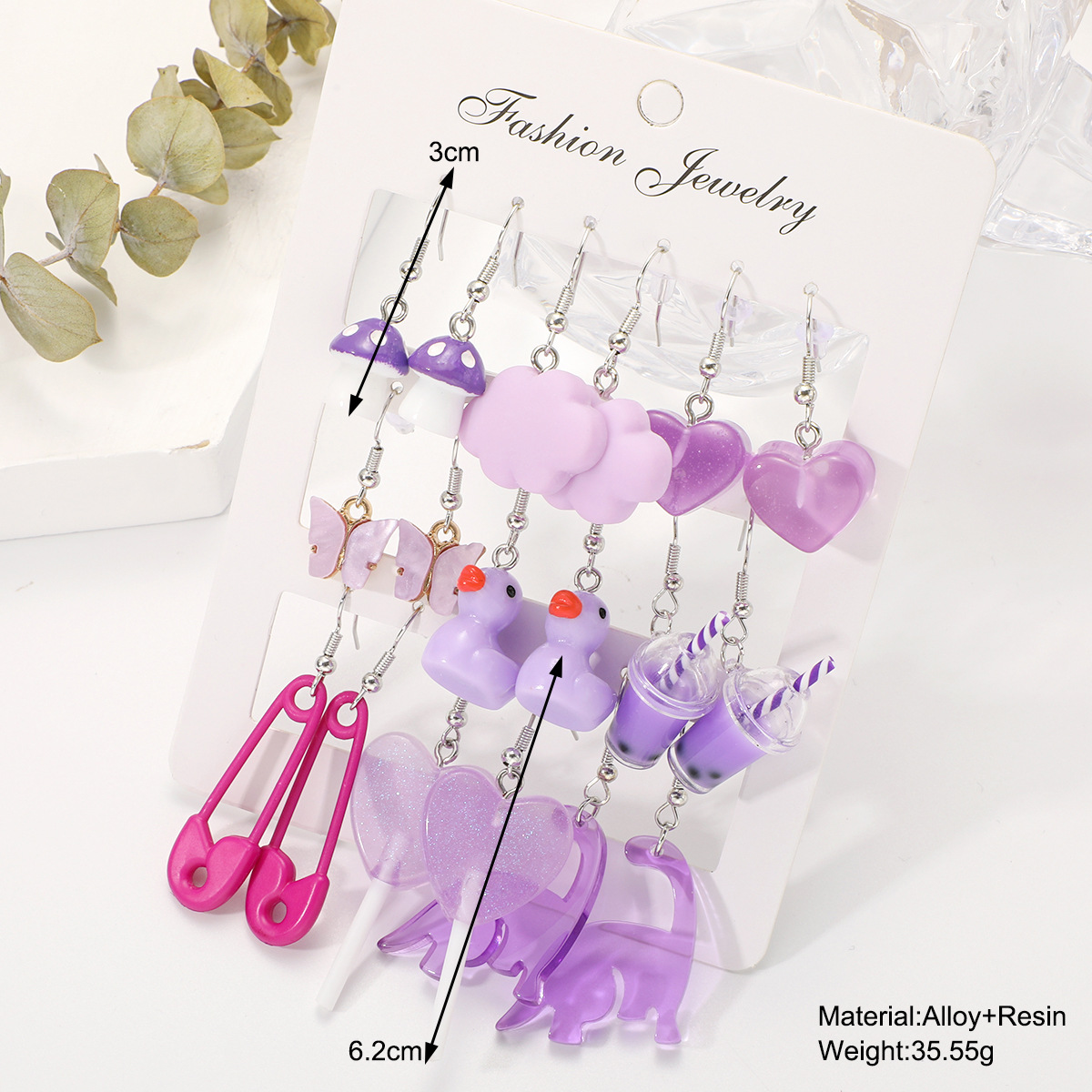 Creative Butterfly Clouds Little Duck Earrings Pendant Glaze Mushroom Earrings Purple Plaid Heart Earrings 5-piece Set