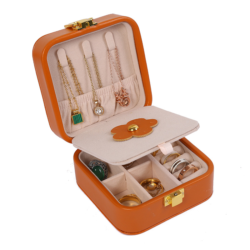 Customized Soft Leather Jewelry Storage Box Multi-Layer Mirror Jewelry Storage Box Travel Necklace Storage Ring Storage Box