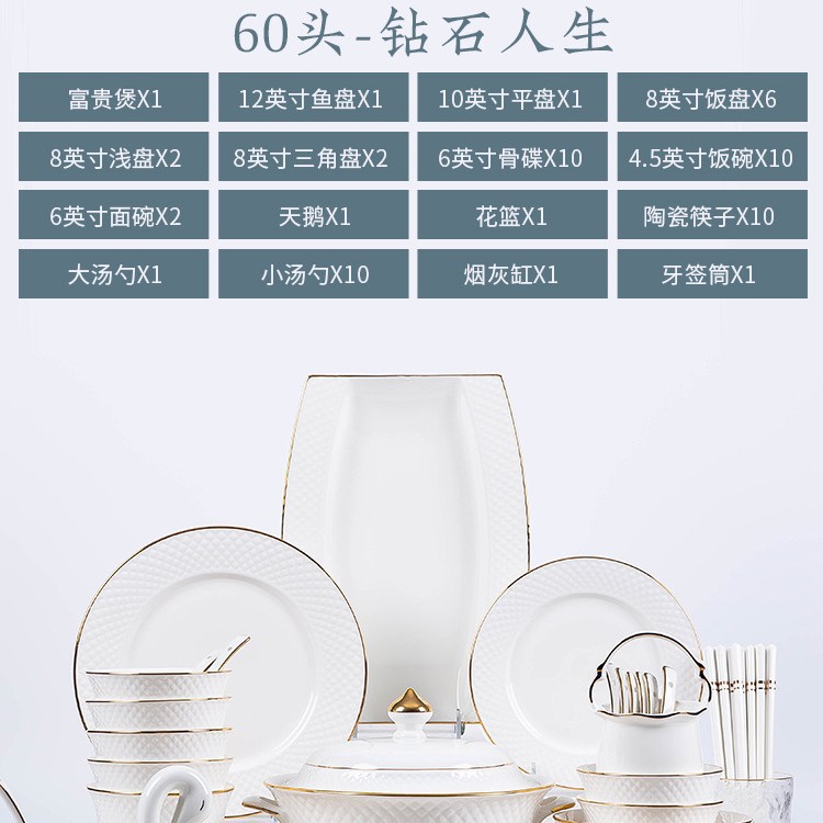 Diamond Bone China Tableware Light Luxury Bowl Plate Combination Jingdezhen Ceramic Bowl Chopsticks Set Gift