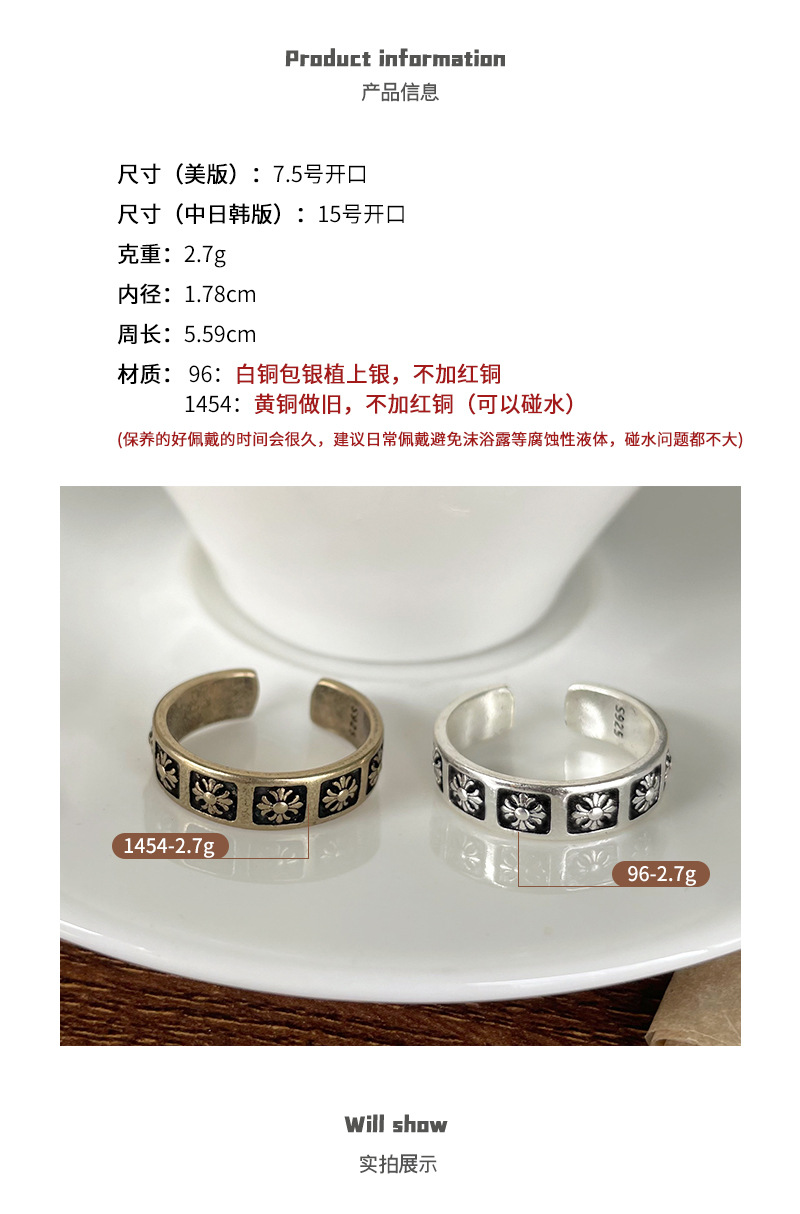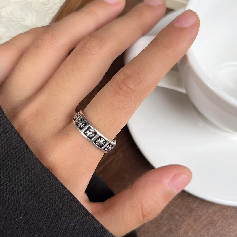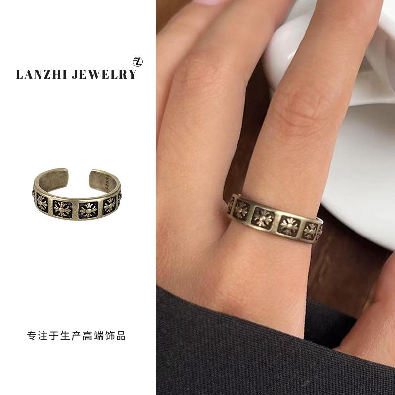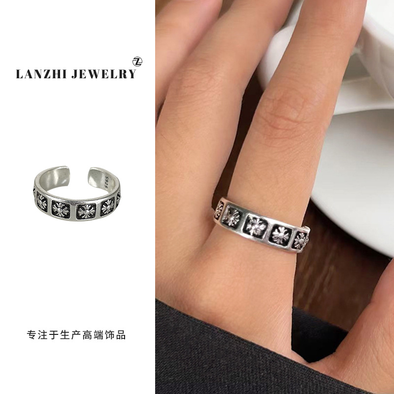 Lan zhi 925 silver ring personality cross neutral retro jewelry women's opening ring does not fade niche wholesale