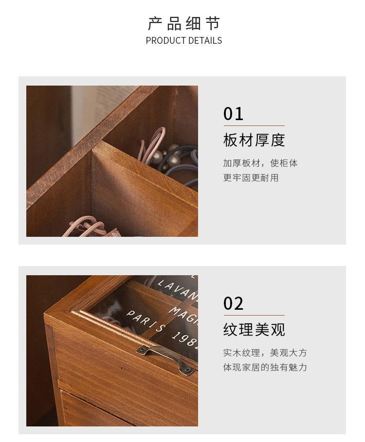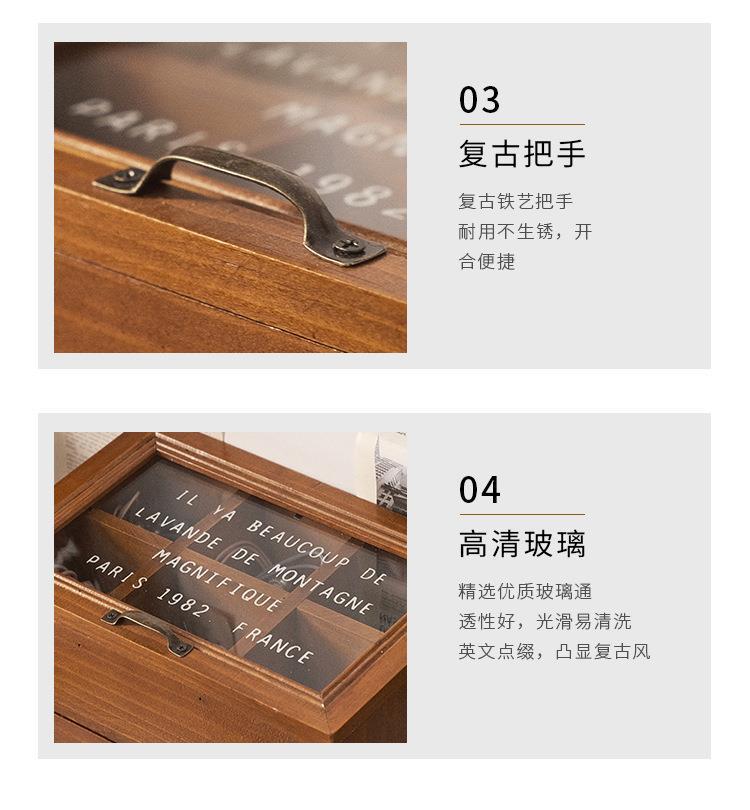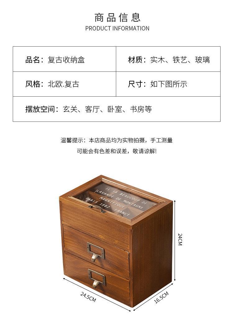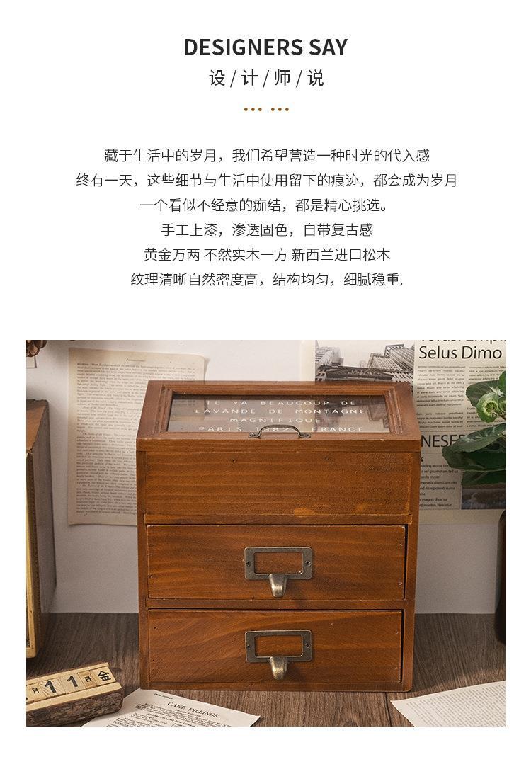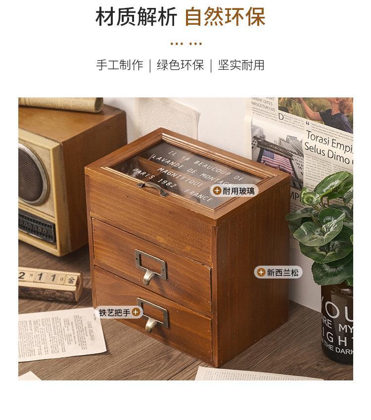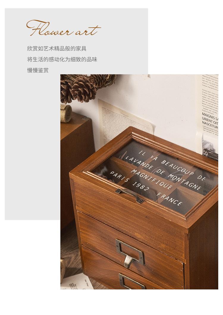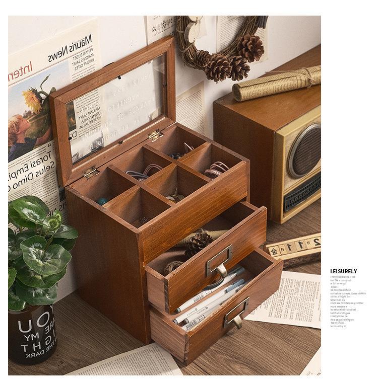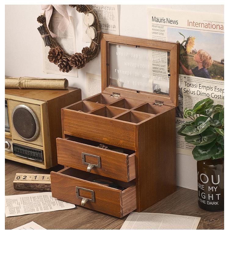 Wooden Box Vintage Glass with Flip Jewelry Storage Box Solid Wood Desktop Wooden with Drawer Skin Care Perfume