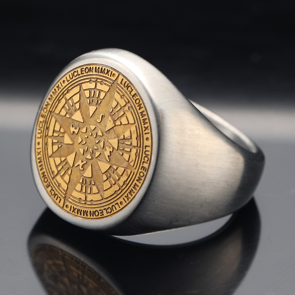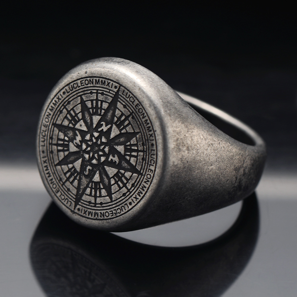 Crow Jewelry European and American Punk Retro Seven-Pointed Star Compass Men's Titanium Steel Ring English Stainless Steel Ring