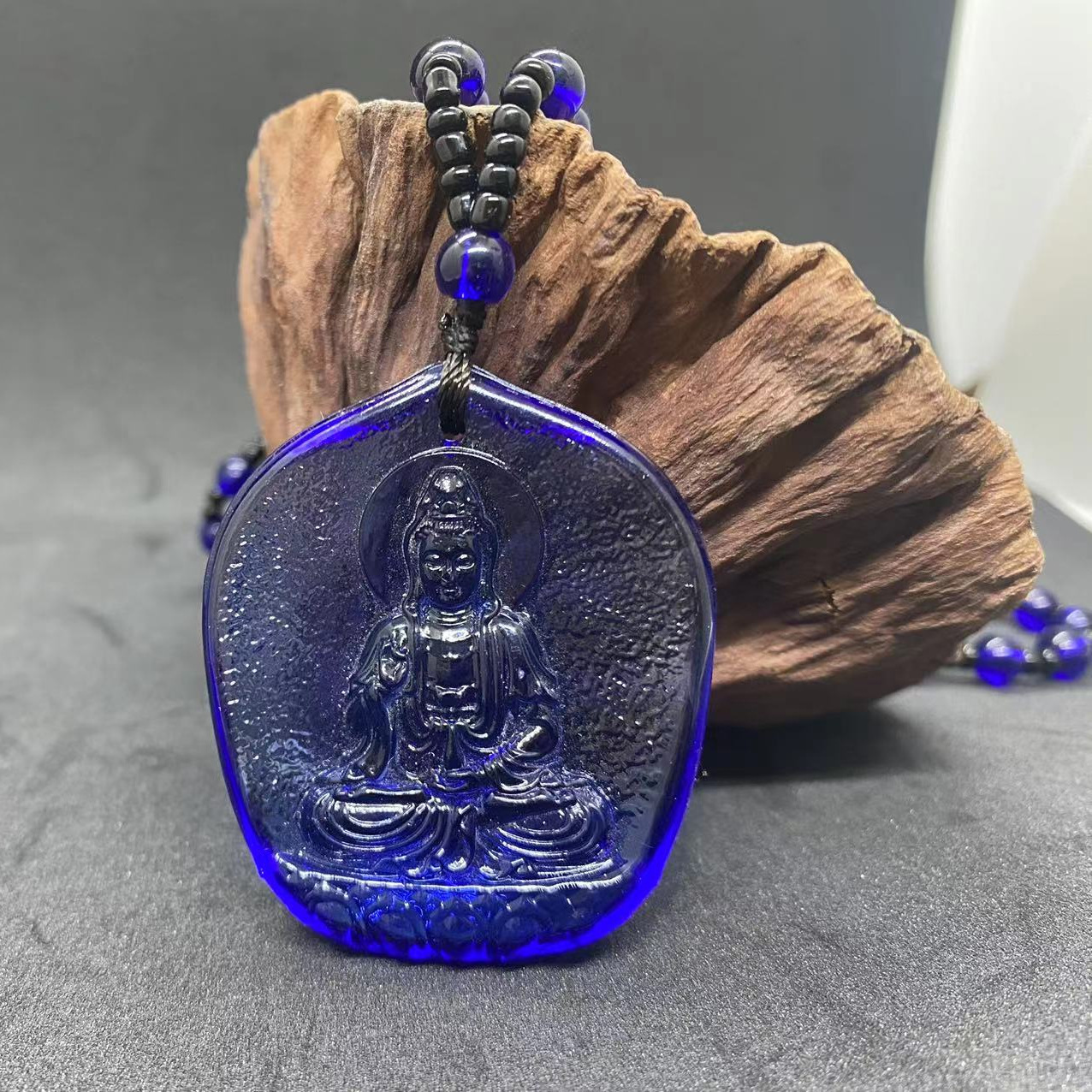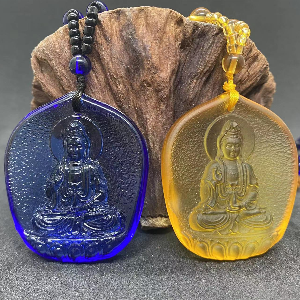 New product Guanyin Bodhisattva pendant religious glass pendant men's and women's pendant amulet necklace stall gift wholesale