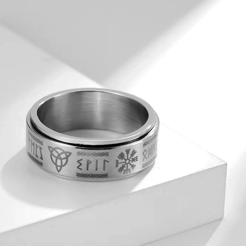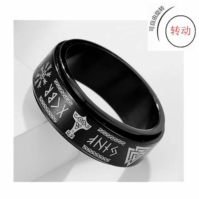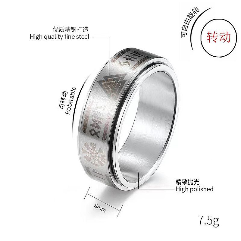 Amazon Nordic Viking Text Rotatable Titanium Steel Couple Ring Luen Rune Decompression Men's Ring