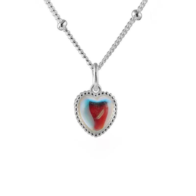 Gradient colorful stone heart-shaped clavicle chain female French sweet girl feeling small Moonstone heart-shaped necklace turn good luck