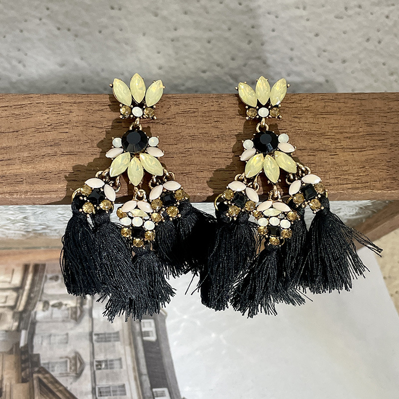 Color: 2310189a sparkling diamond black tassel earrings