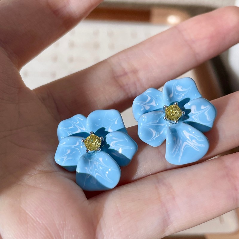 Color: 2505092 blue flower zircon earrings (s925 silver needle)