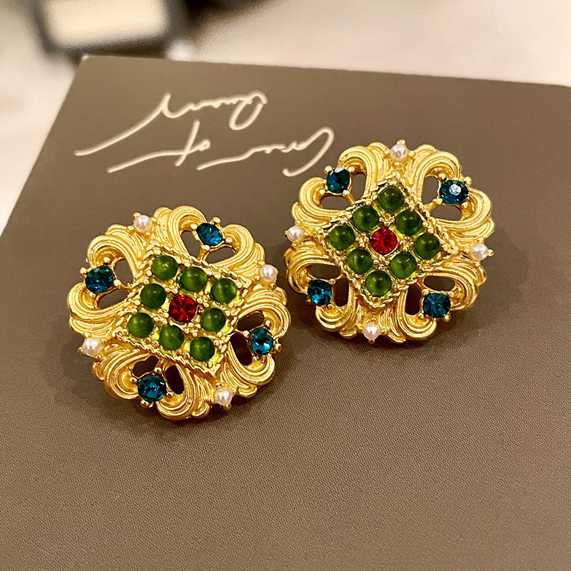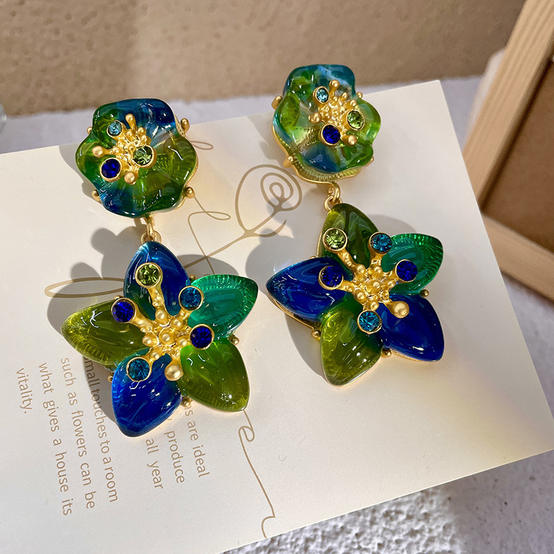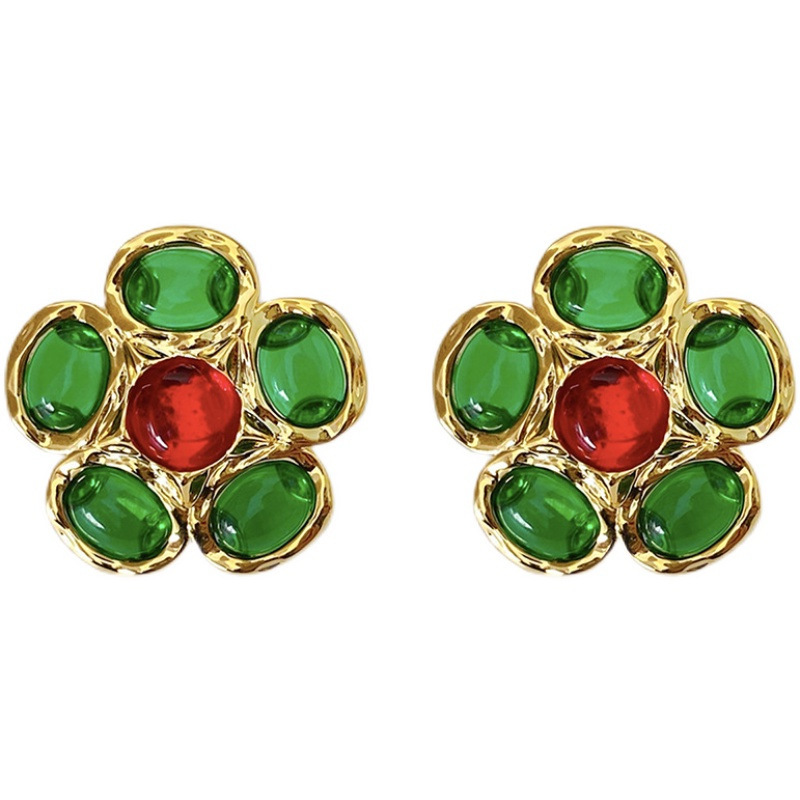 Color: 2211241 green diamond metal petals (s925 silver needle)