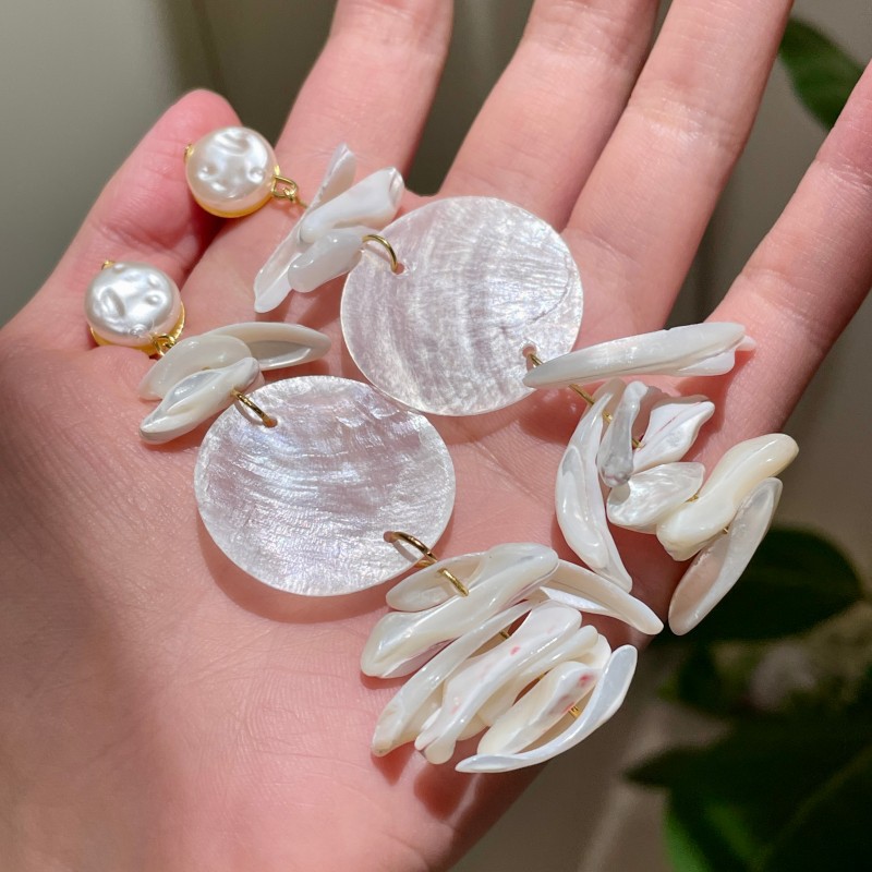 Color: 2506202 special-shaped shell beaded round earrings (s925 silver needle)