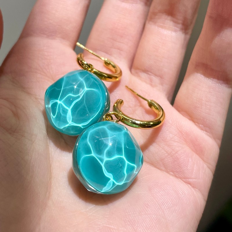Color: 2506115 blue resin hoop earrings (s925 silver needle