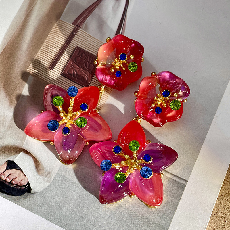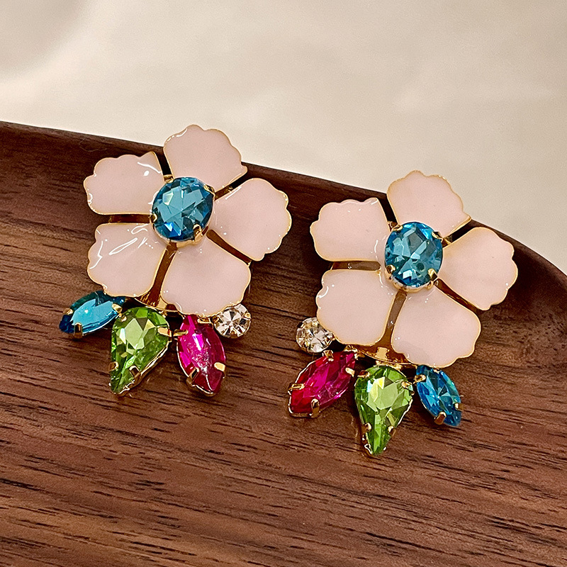 Color: 2504037 pink flower colored diamond earrings (s925 silver needle