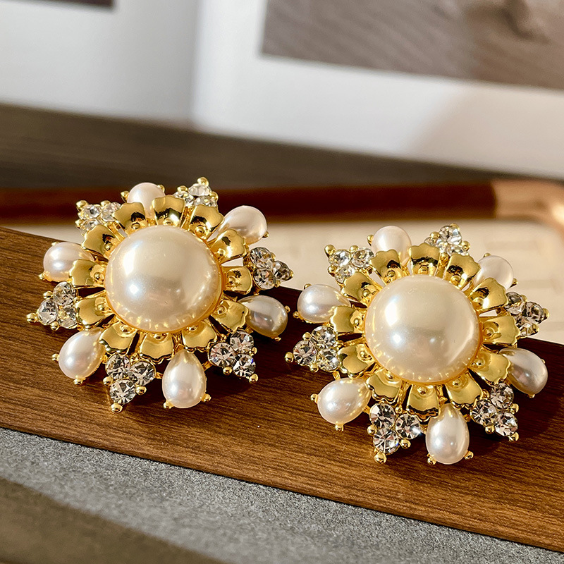 Color: 2502069 pearl sparkling diamond sunflower earrings (s925 silver needle)