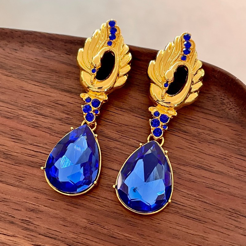 Color: 2505157 peacock blue water drop diamond earrings (s925 silver needle)