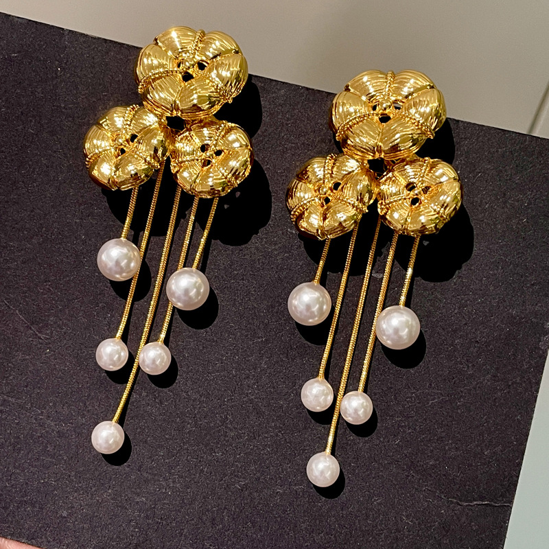 Color: 2412220 golden lotus leaf pearl tassel earrings (s925 silver needle)