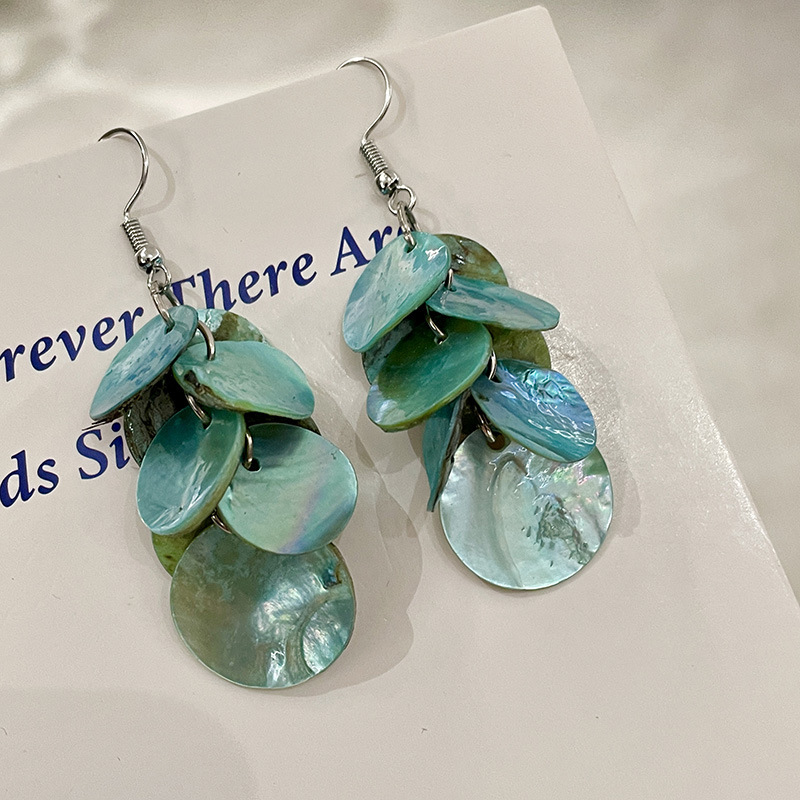 Color: 2503367 green round shell tassel earrings