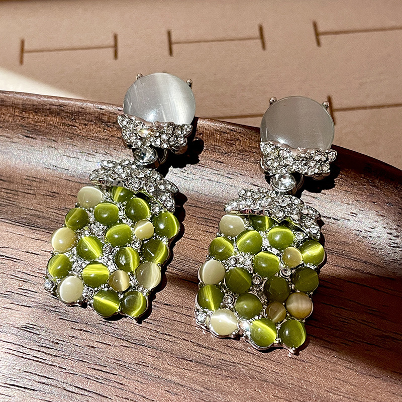 Color: 2504027 green cat eye sparkling diamond earrings (s925 silver needle