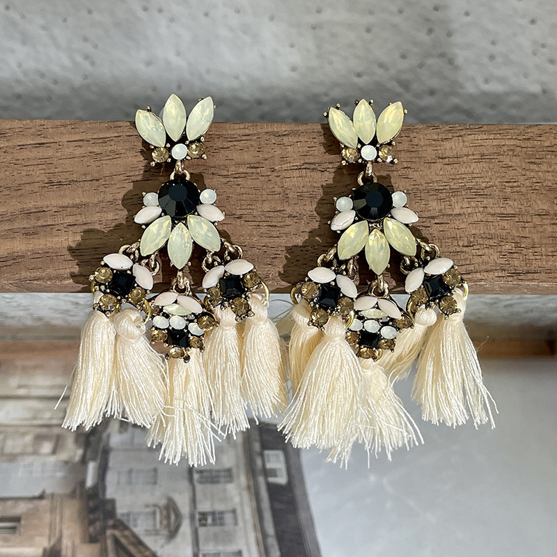 Color: 2310189b sparkling diamond beige tassel earrings