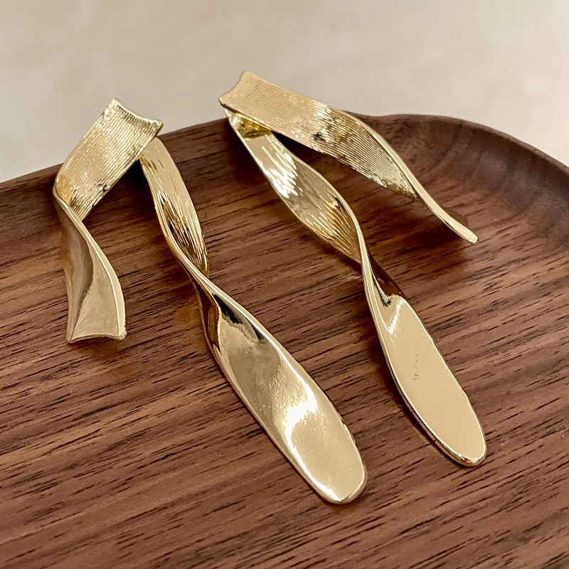 Color: 2504231a gold metal ribbon earrings (s925 silver needle)