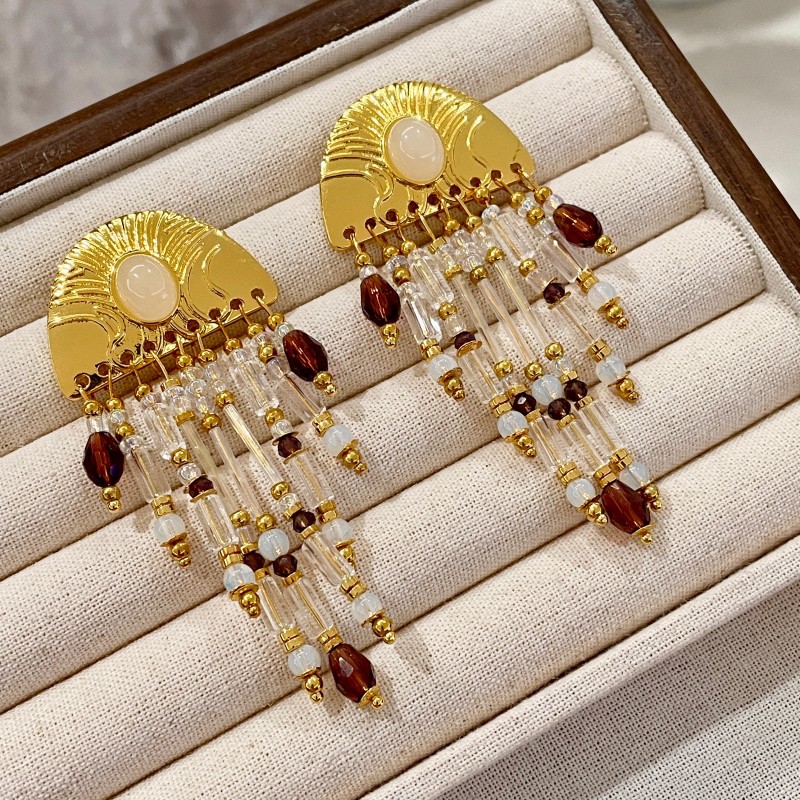 Color: 2507028 semi-circular metal crystal beaded tassel earrings (s925 silver needle)