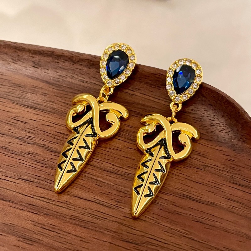 Color: 2505251 metal sword blue crystal earrings (s925 silver needle)