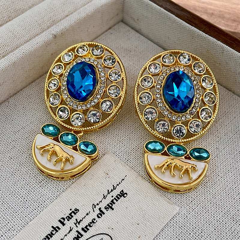 Color: 2503039 blue crystal full diamond leopard earrings (s925 silver needle)