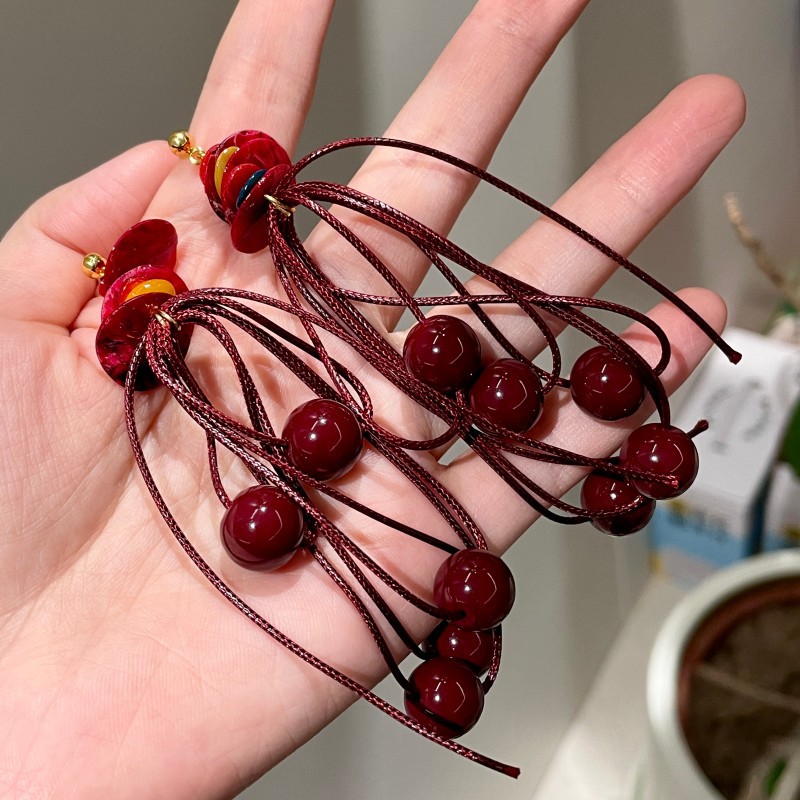 Color: 2508181 red beaded tassel earrings (s925 silver needle)