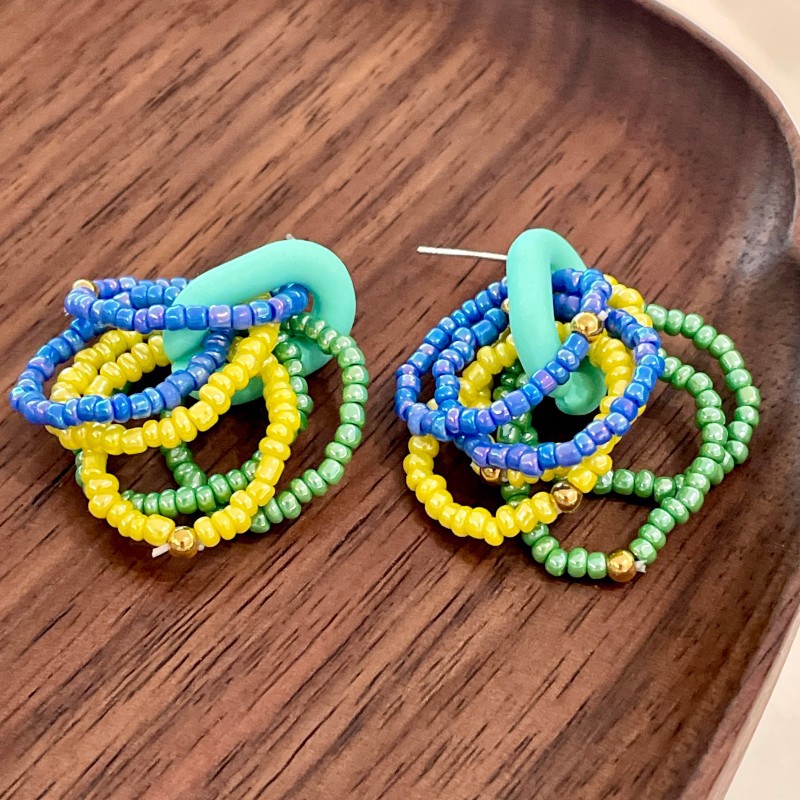 Color: 2504156 blue-green contrasting beaded earrings (s925 silver needle)