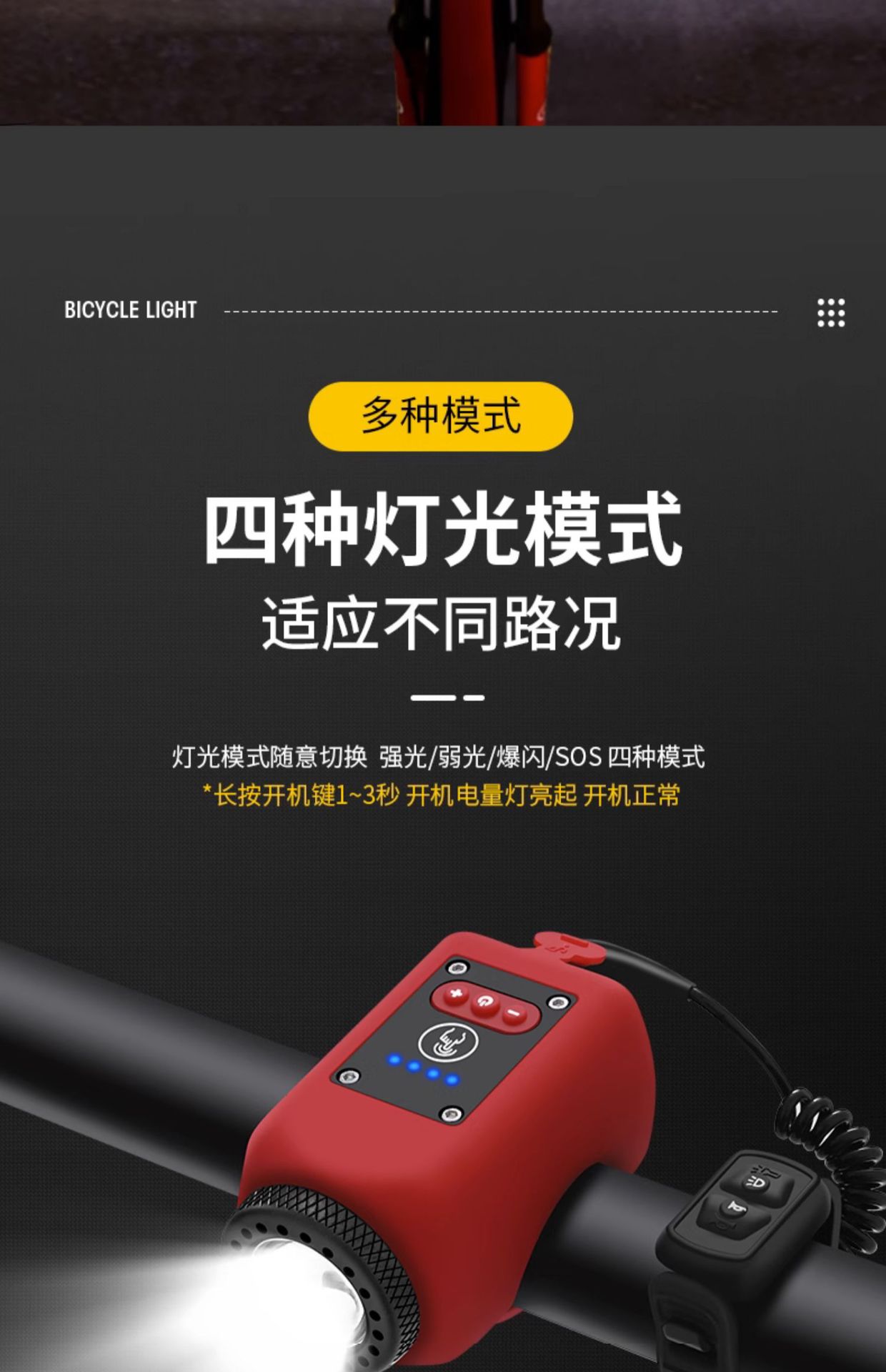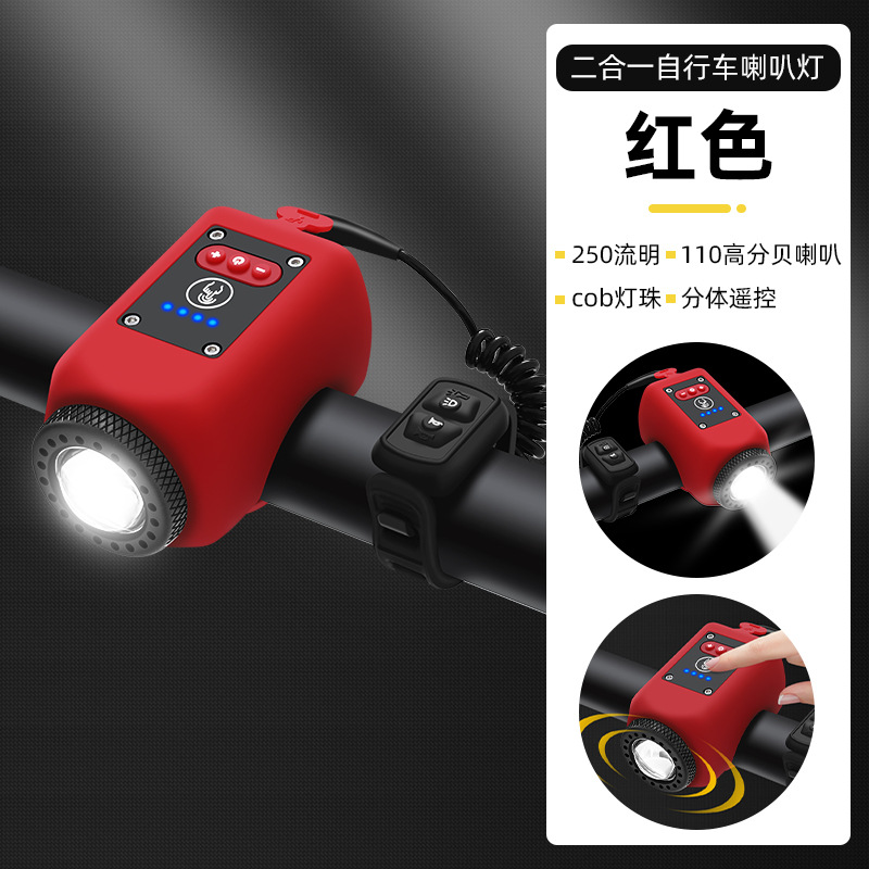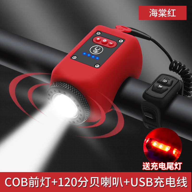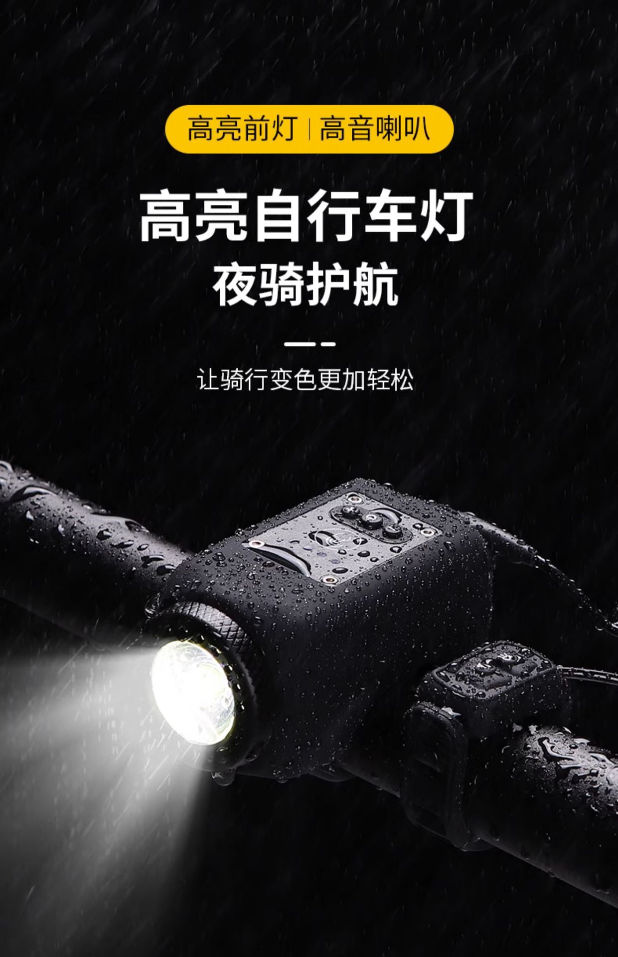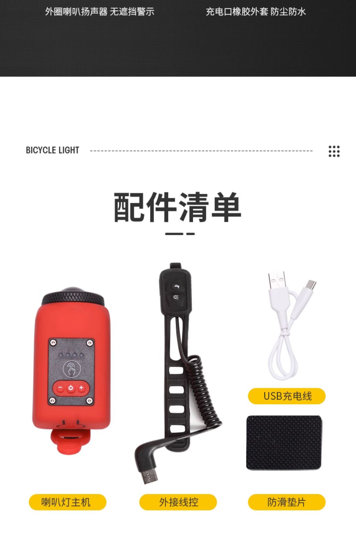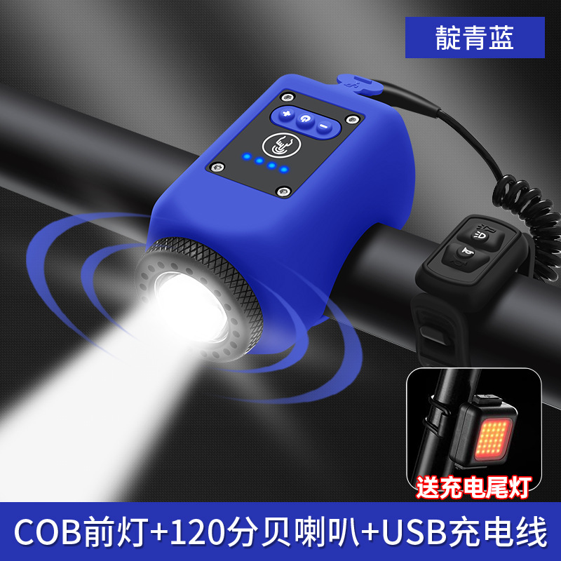 Bicycle Light Night Riding Headlight USB Rechargeable Horn Children's Bell Flashlight Rainproof Mountain Bike Riding Equipment