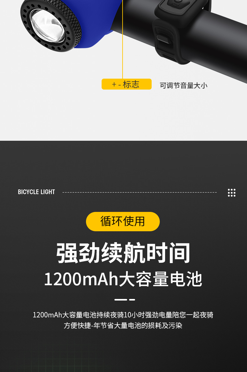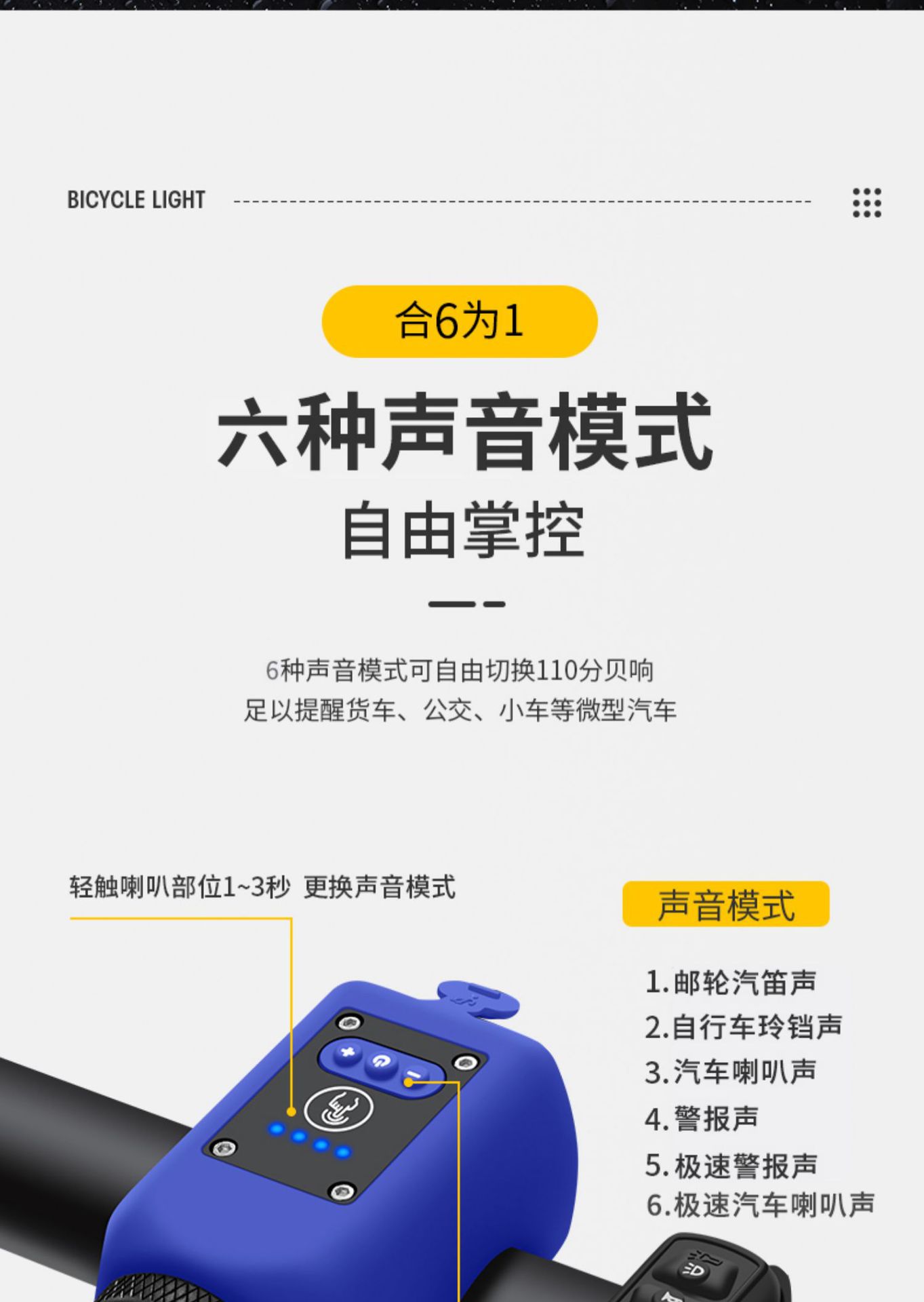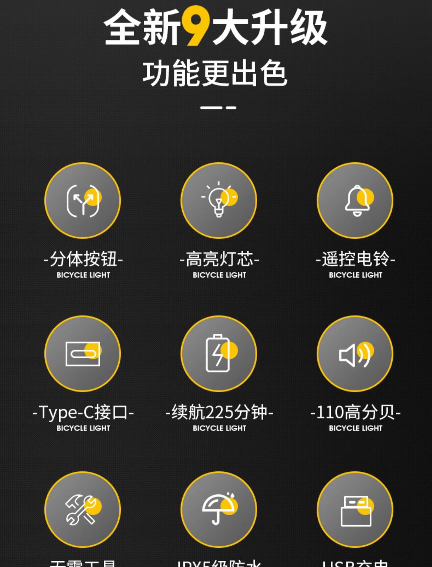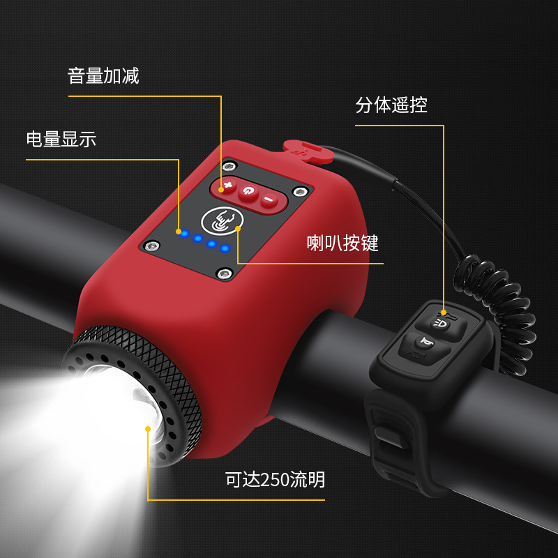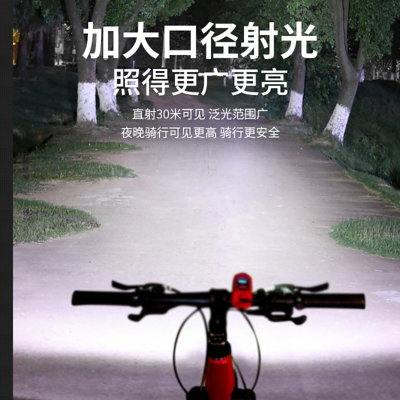 Bicycle Light Night Riding Headlight USB Rechargeable Horn Children's Bell Flashlight Rainproof Mountain Bike Riding Equipment