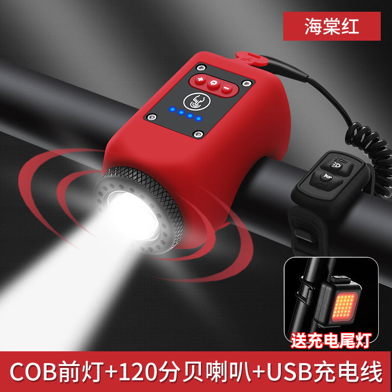 Color: [Night Riding Partner] Begonia Red-Charging Horn Lamp Charging Tail Lamp