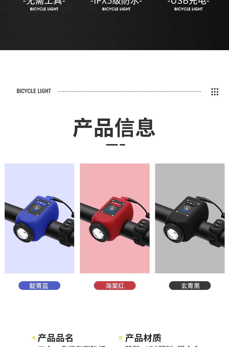 [Night Riding Partner] Indigo Blue-Charging Horn Lamp Charging Tail Lamp