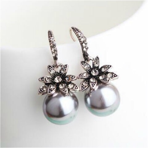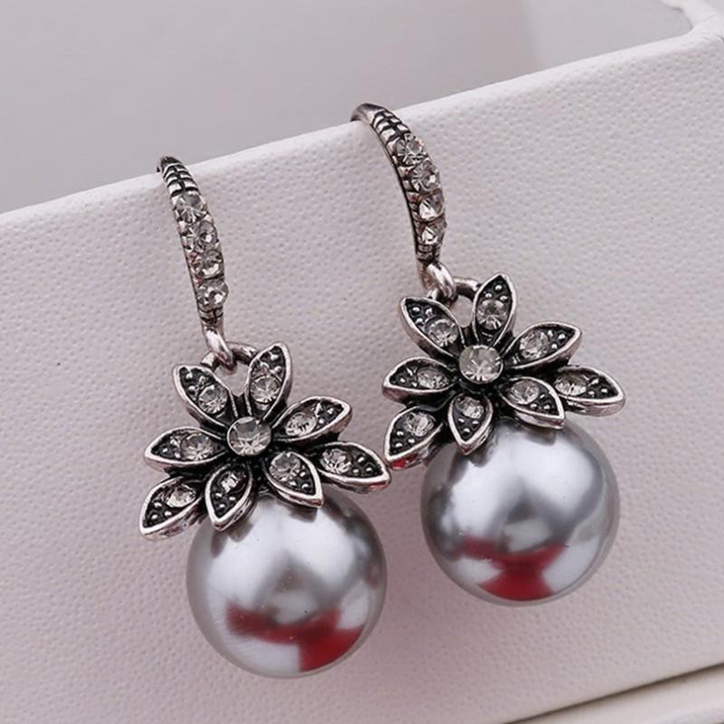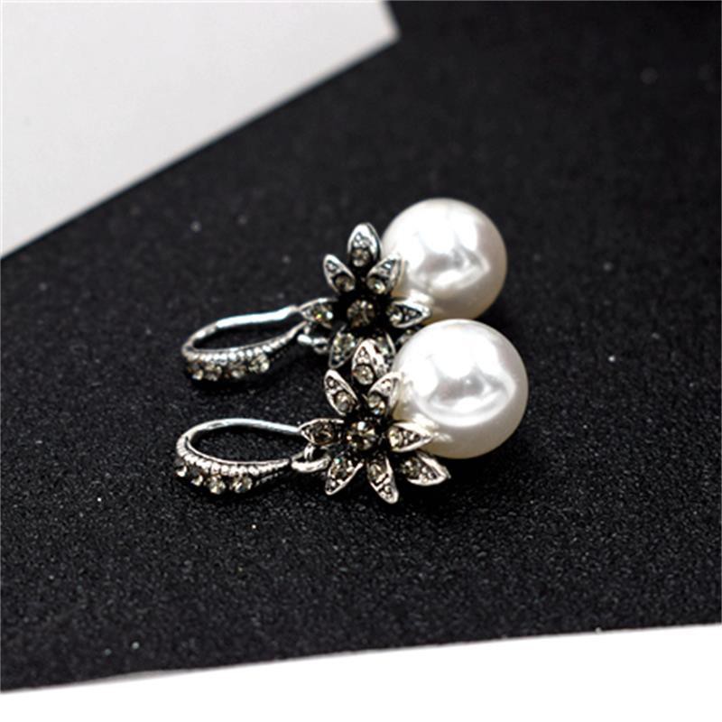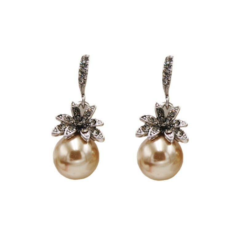 新款欧美复古时尚创意珍珠耳环可爱太阳花太阳花耳环镶钻花朵耳饰