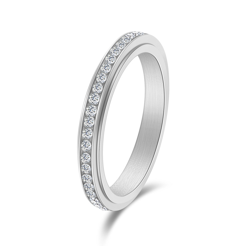 Ring: European and American Korean-style simple round full diamond stainless steel rotatable women's ring golden temperament finger ring hand jewelry