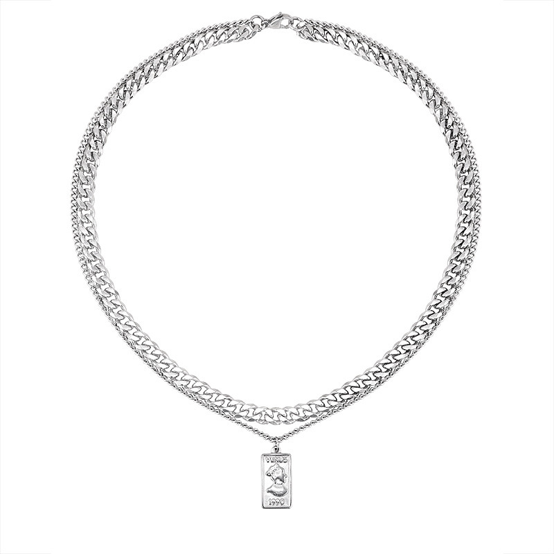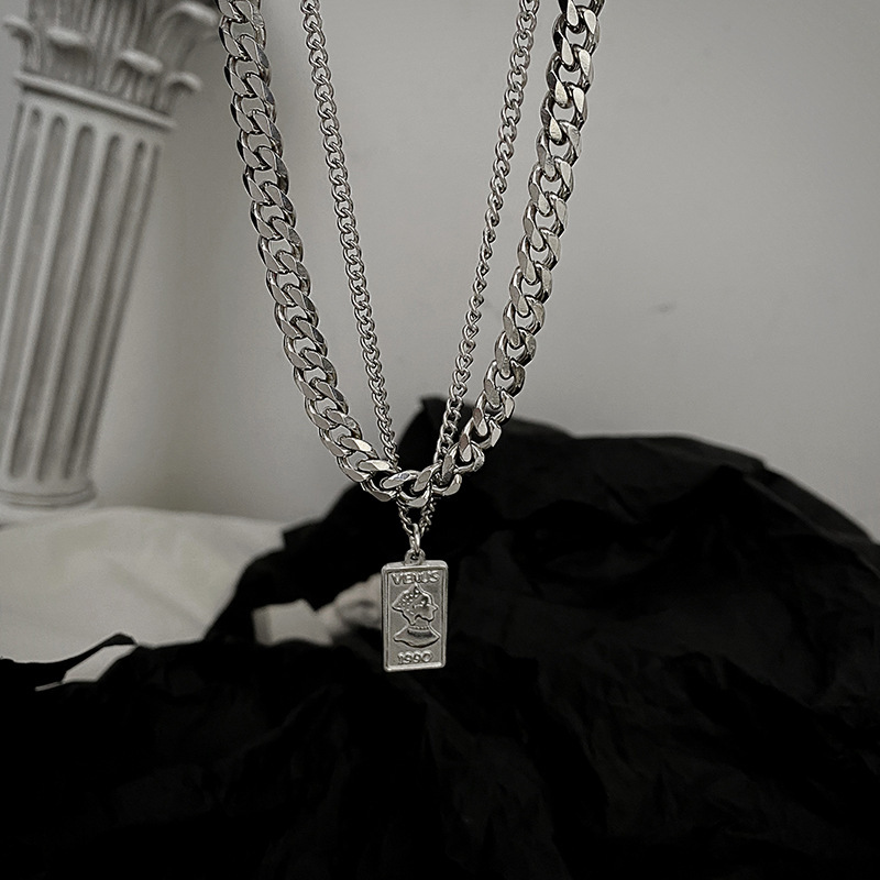 Hip-Hop Niche Cuban Necklace Men's 2024 Trendy Design Double-Layer Titanium Steel Retro Chain Sweatshirt Chain Accessories Domineering